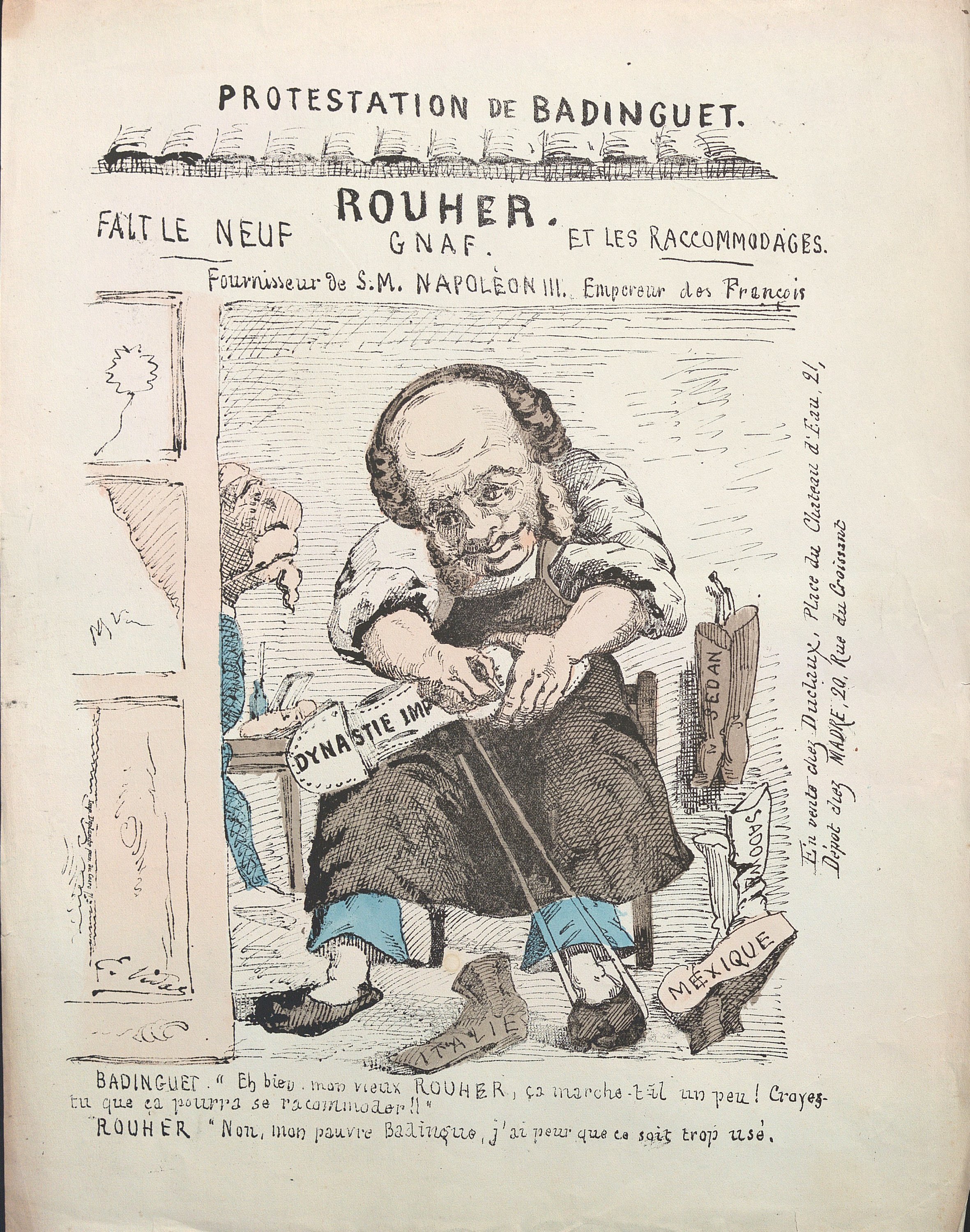 Eugène Vincent Vidal (1850-1908), 2 feuilles volantes: Les Points noirs de Badingue, 27 x 35 cm ; Protestation de Badinguet, 36,5 x 28 cm ;