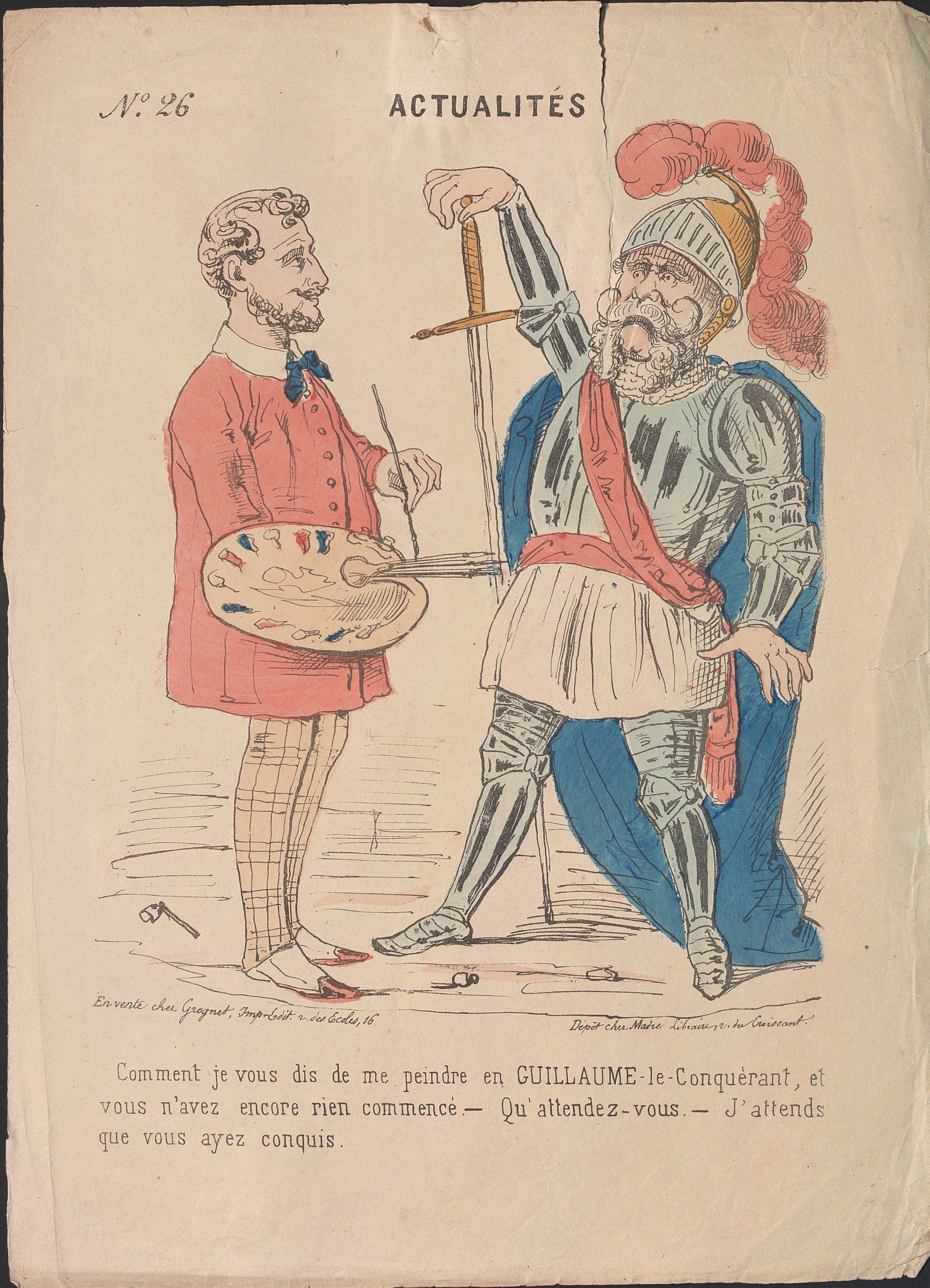 A. Baudet-Bauderval: n°26 Actualités Comment je vous dis de me peindre en Guillaume le Conquérant 39 x 28 cm (déchirures) ;