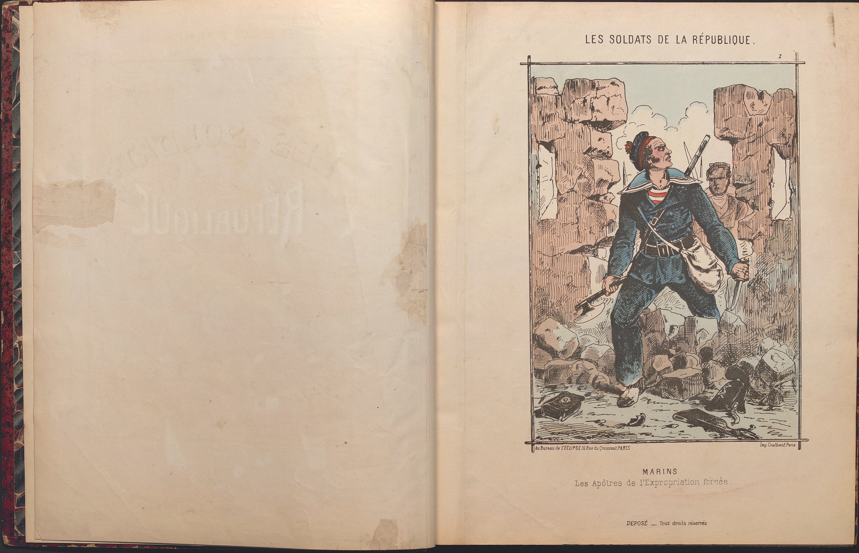 Souvenirs du Siège de Paris. Les Défenseurs de la Capitale. [Suivi de] Paris assiégé. Vie parisienne. [Suivi de] Les Soldats de la République. L'Armée française en Campagne.? Paris, Au Bureau de L'Eclipse, [1871-1872]. In-4 rel. ½ chagr. rouge, 2 ff. (titre) et 31 pl., 2 ff. (titre) et 31 pl.- 2 ff. (titre) et 31 pl.