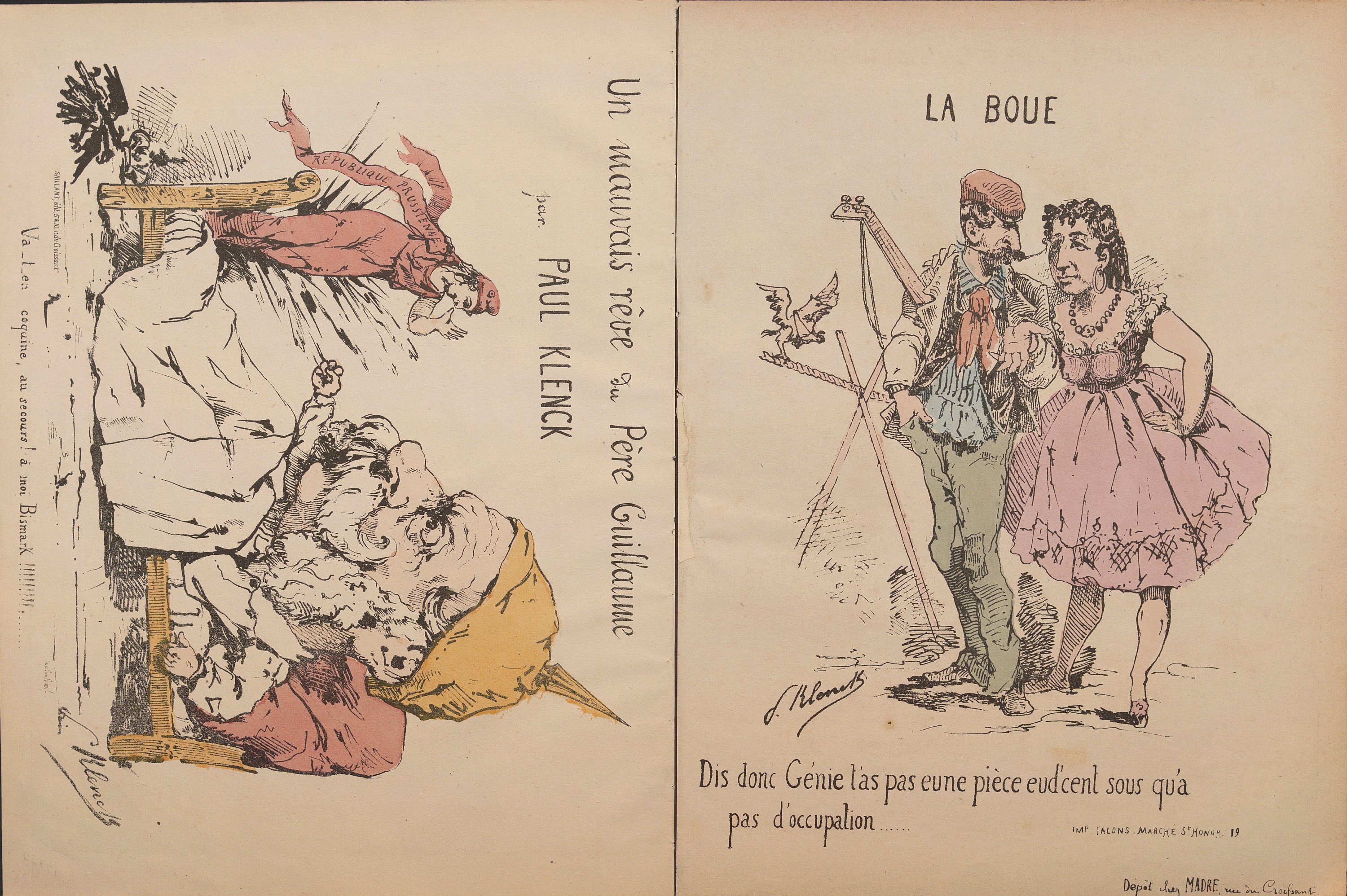 Paul Klenck, né à Bâle en avril 1844, dessinateur, caricaturiste et illustrateur, il a travaillé à Paris et a collaboré avec des journaux illustrés tels que "Cricri" et "Caricature pour tous". Il est connu pour ses nombreuses caricatures de la Commune de Paris et de la guerre franco-prussienne de 1870-1871. Il décède à Paris en 1919.
