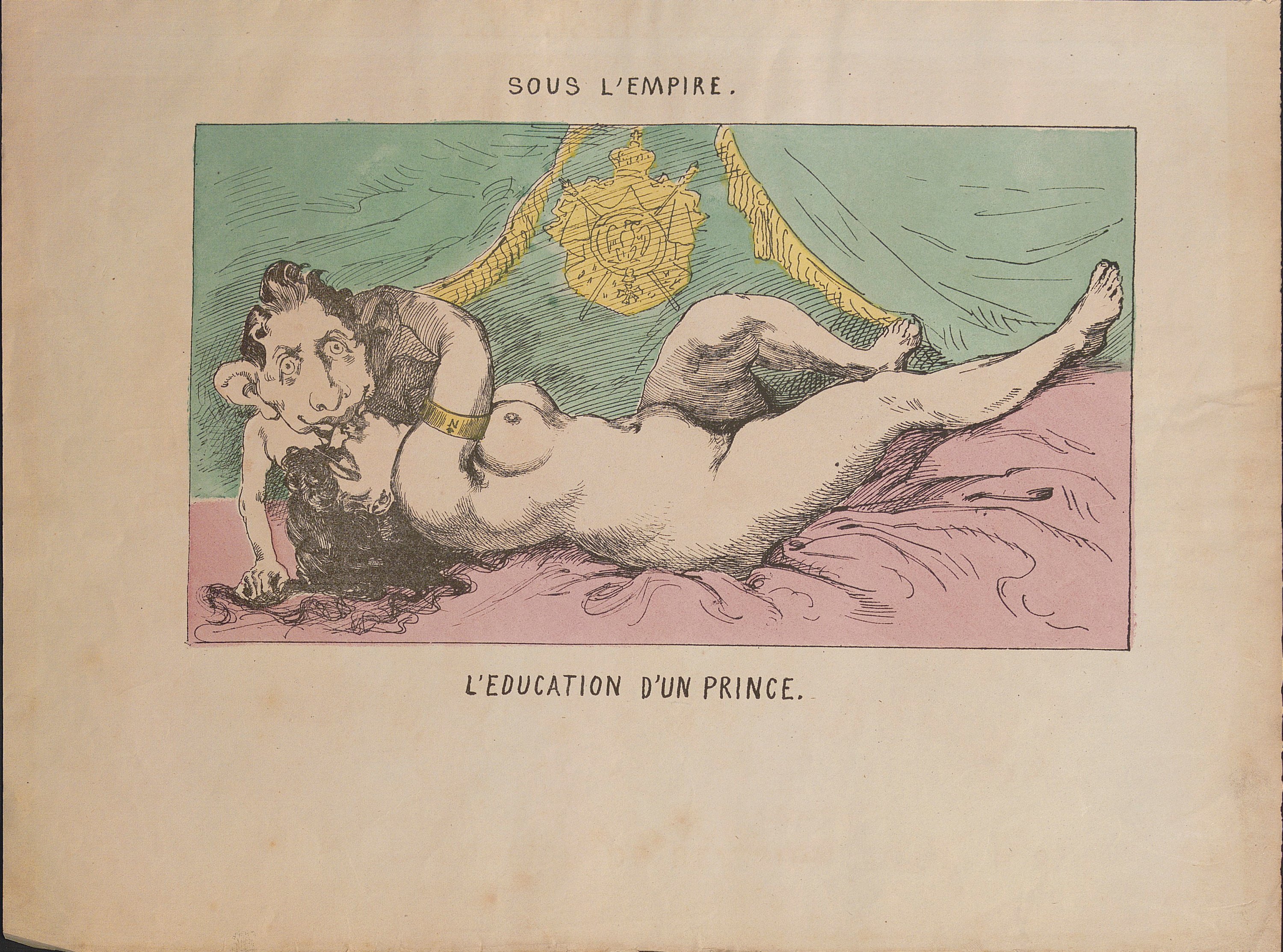 Les preuves de l’infamie de M. H. de Villemessant , 32,5 x 27,5 cm (petite déchirure) ; Toutes trois trahies!, 36,5 x 26,5 cm, contrecollé sur feuillet ; La poire et le couteau, 32,5 x 22,5 cm ; Pièces authentiques, La Police, 36 x 25,5 cm ; La Parisienne, chant de Léon Charly, en N&B, 37,5 x 26 cm, contrecollé sur feuillet ; Sous l’Empire, L’éducation d’un Prince, 26 x 34,5 cm ; série Actualités chez Deforet, n°1 au n°23 (mque 13), formats divers (qqs petits déf.) ; Les représentants en représentation,n°2 et 3 (sur 5), 26 x 17 cm ; Croquis révolutionnaires, n°1, 3 et 5, formats et états divers ; La Bêtise humaine, n°1 et 2, 36,5x 27 cm.
