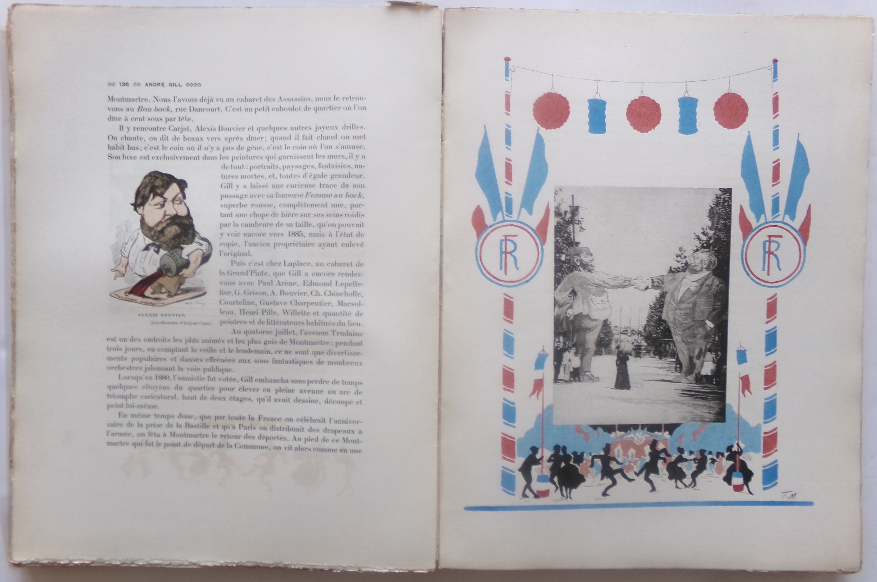 Charles Fontane, Un Maître de la Caricature, André Gill, préface de Ch. Léandre, lettres d’Emile Cohl. 2 tomes en 2 vol. Paris, aux Editions de L’Ibis, 1927/28. In-4 broch. (couv. usées et tâchées, dos fendus et détaché pour le 2nd tome), 311 et 344 p. Intérieur propre. Avec envoi dédicacé, daté et signé au peintre montmartrois Georges Get ;
