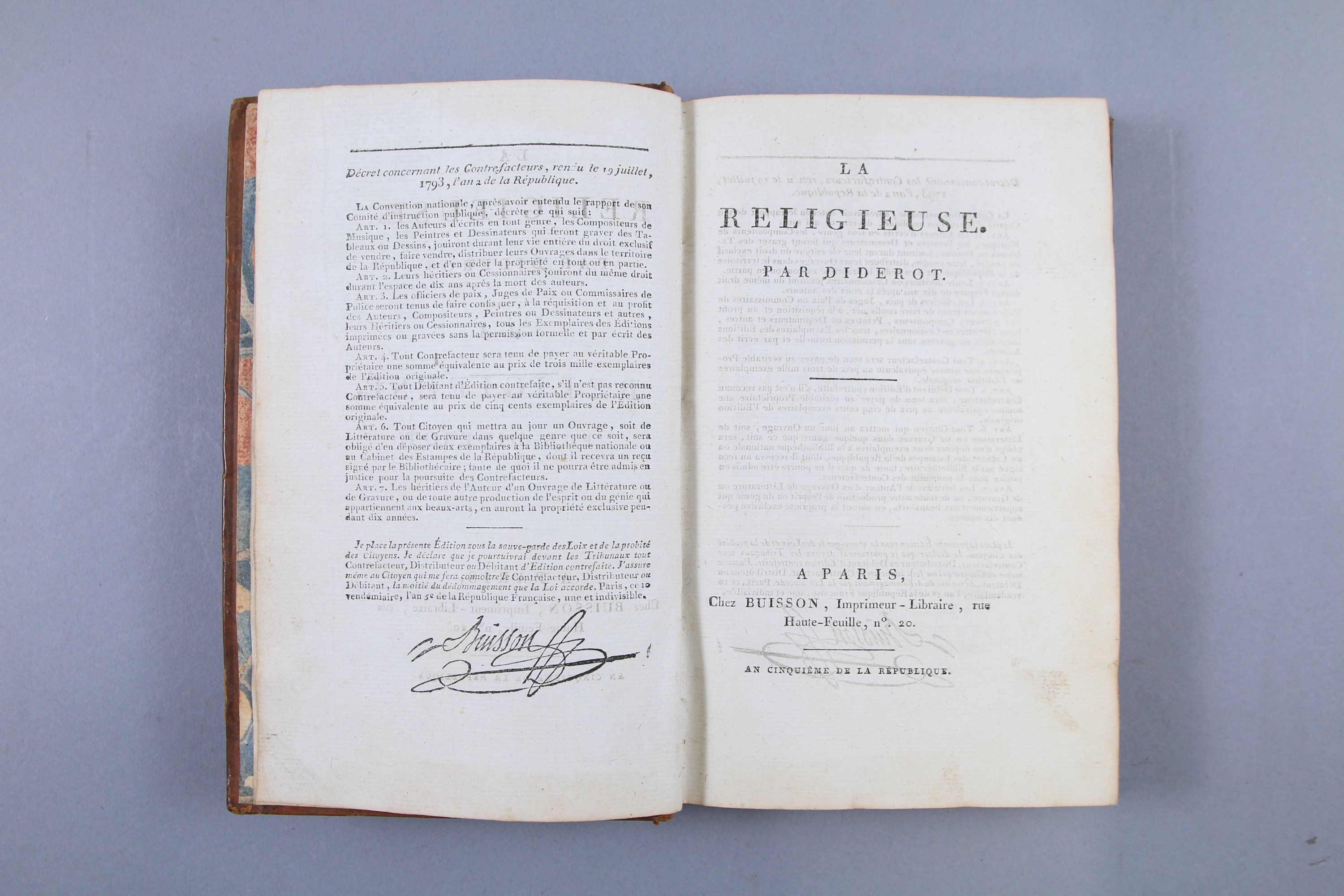 Paris, Chez Buisson, imprimeur-libraire. An-V (1796)