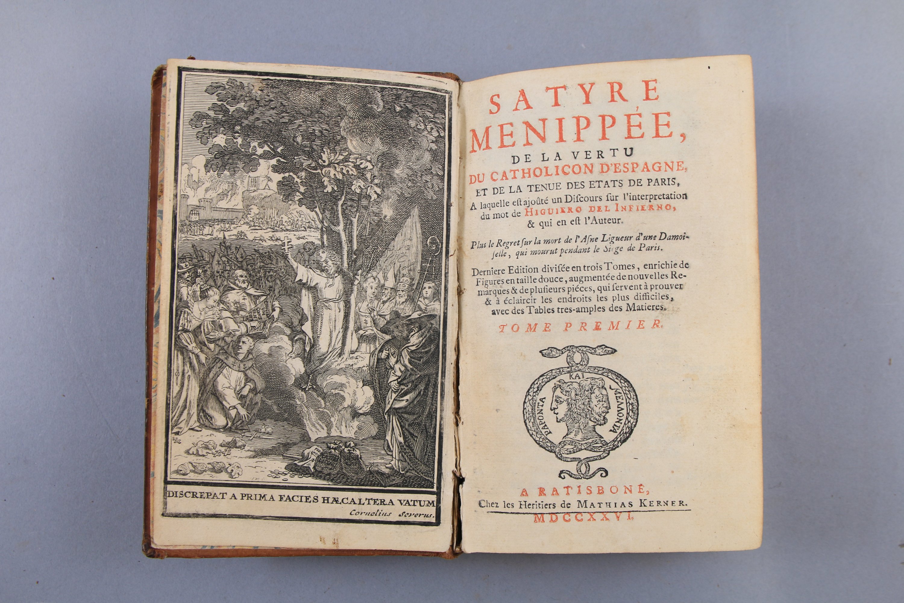 4) Satyre Ménippée, de la vertu du Catholicon d'Espagne ... à laquelle est ajouté un Discours sur l'interprétation du mot de Higuiero del Infierno, et qui en est l'auteur.