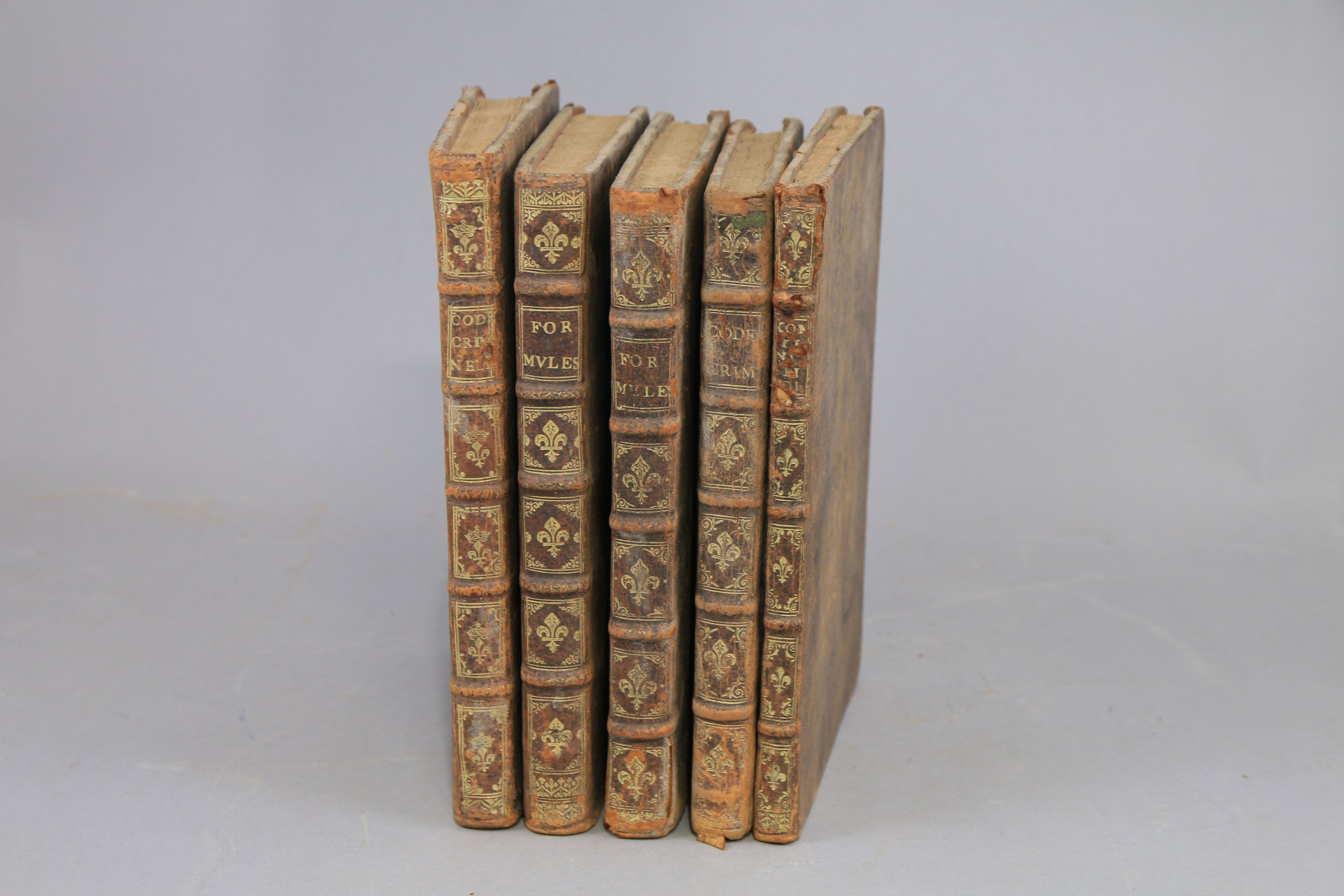 5 volumes in-4, plein veau du temps. Dos ornés de fleurs de lys (Reliures solides, légèrement frottées. Très fortes mouillures et salissures dans un des volumes)