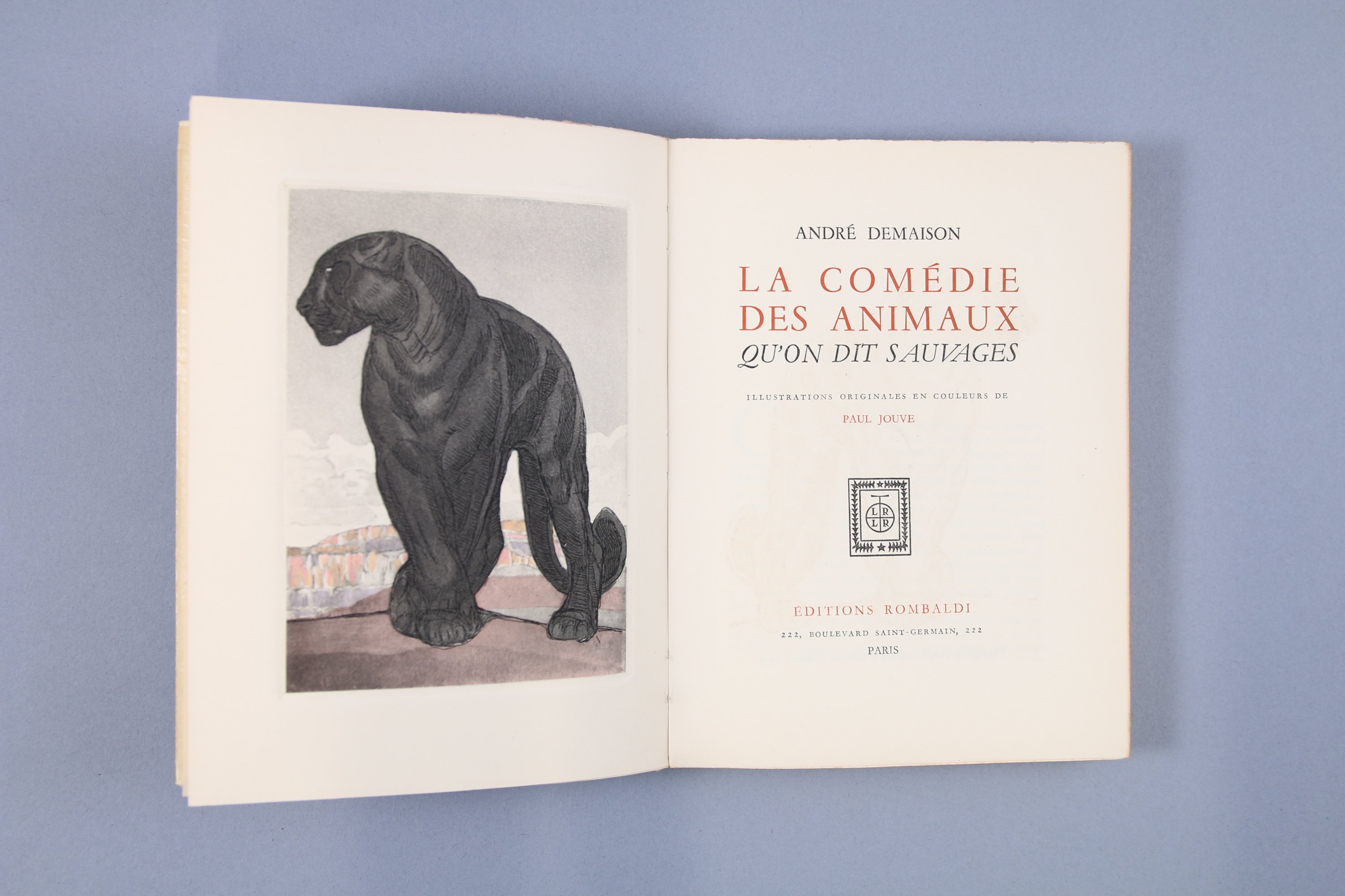 5 illustrations originales en couleurs hors texte gravées sur cuivre de Paul Jouve, mises en couleurs au pochoir par Edmond Vairel, impression sur vélin crème de Rives. Ex. n°4829
