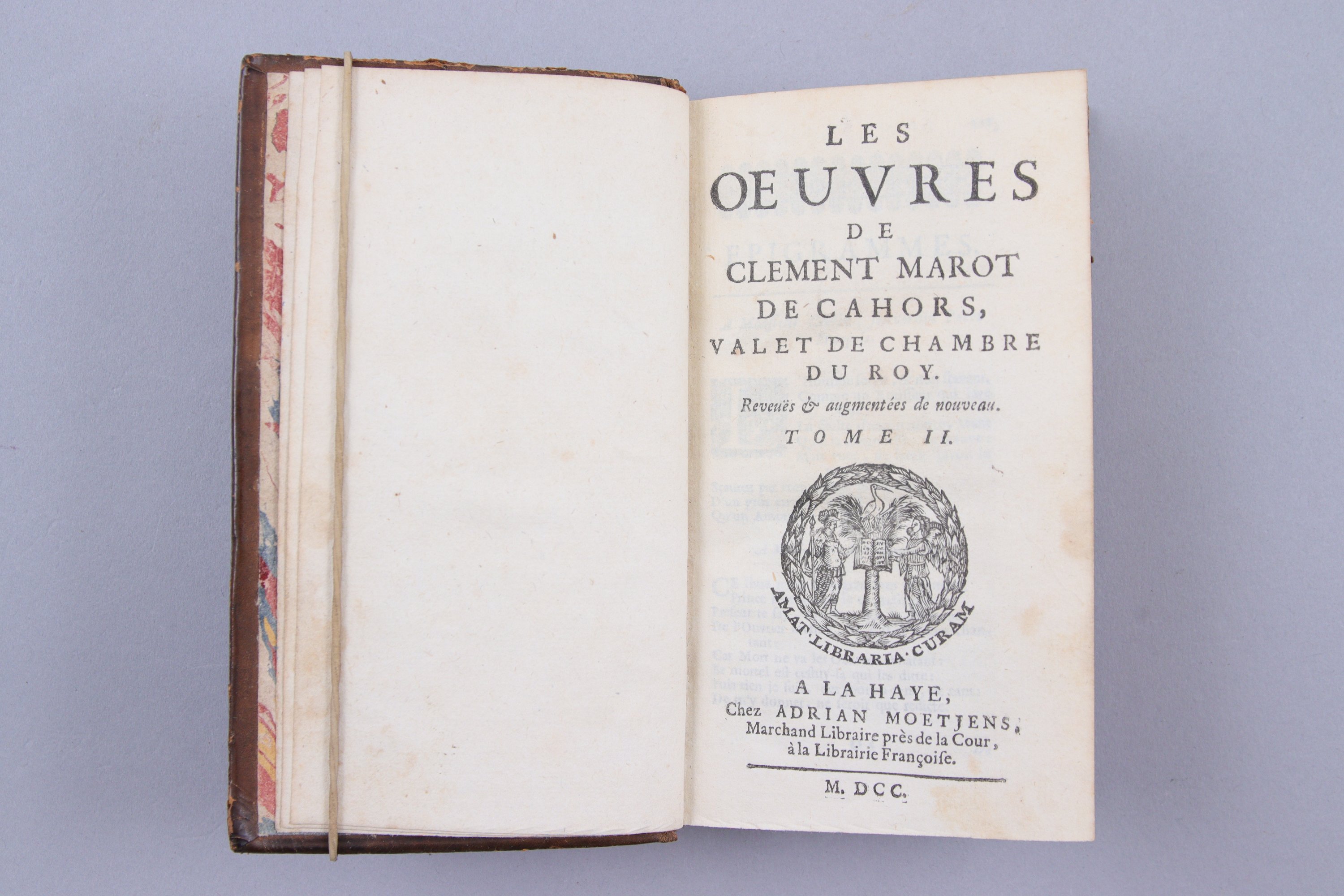 Les Oeuvres de Clément Marot de Cahors, valet de chambre du Roy. Revues et augmentées de nouveau.. La Haye, Adrian Moetjens. 1700