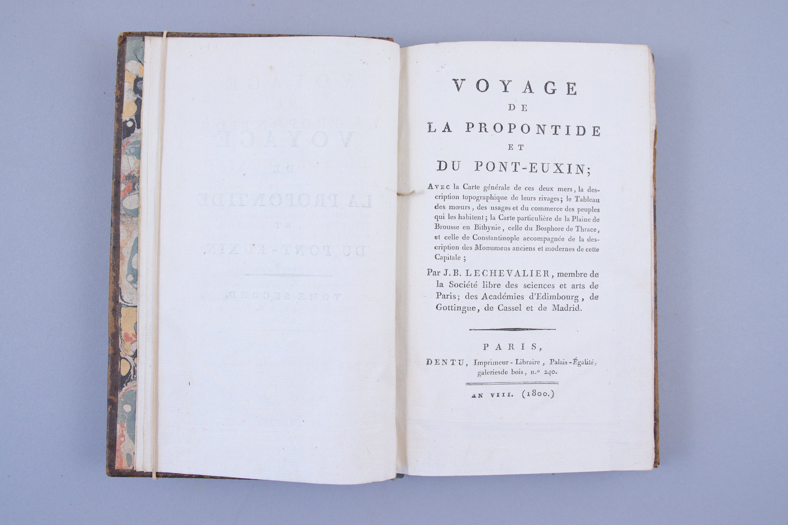 Voyage de la Propontide et du Pont-Euxin, avec la carte générale de ces deux mers, la description topographique de leurs rivages, le tableau des moeurs, des usages et des pauples qui les habitent ; la carte particulière de la Plaine de Brousse ou Bithynie, celle du Bosphore de Thrace et celle de Constantinople, accompagnée de la description des Monumens anciens et modernes de cette capitale..