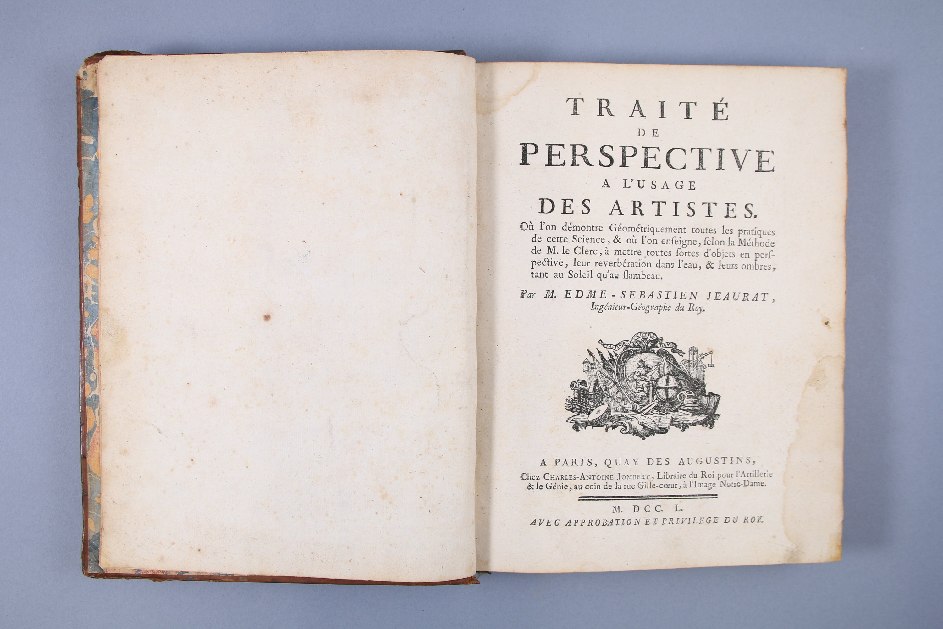 Edme Sébastien Jeaurat, astronome, fils du graveur Edme Jeaurat, petit-fils par sa mère du graveur Sébastien Leclerc, neveu du peintre Etienne Jeaurat, publie en 1750 ce Traité de Perspective, ouvrage qui marqua toute l'école française de peinture de la fin XVIIIème.