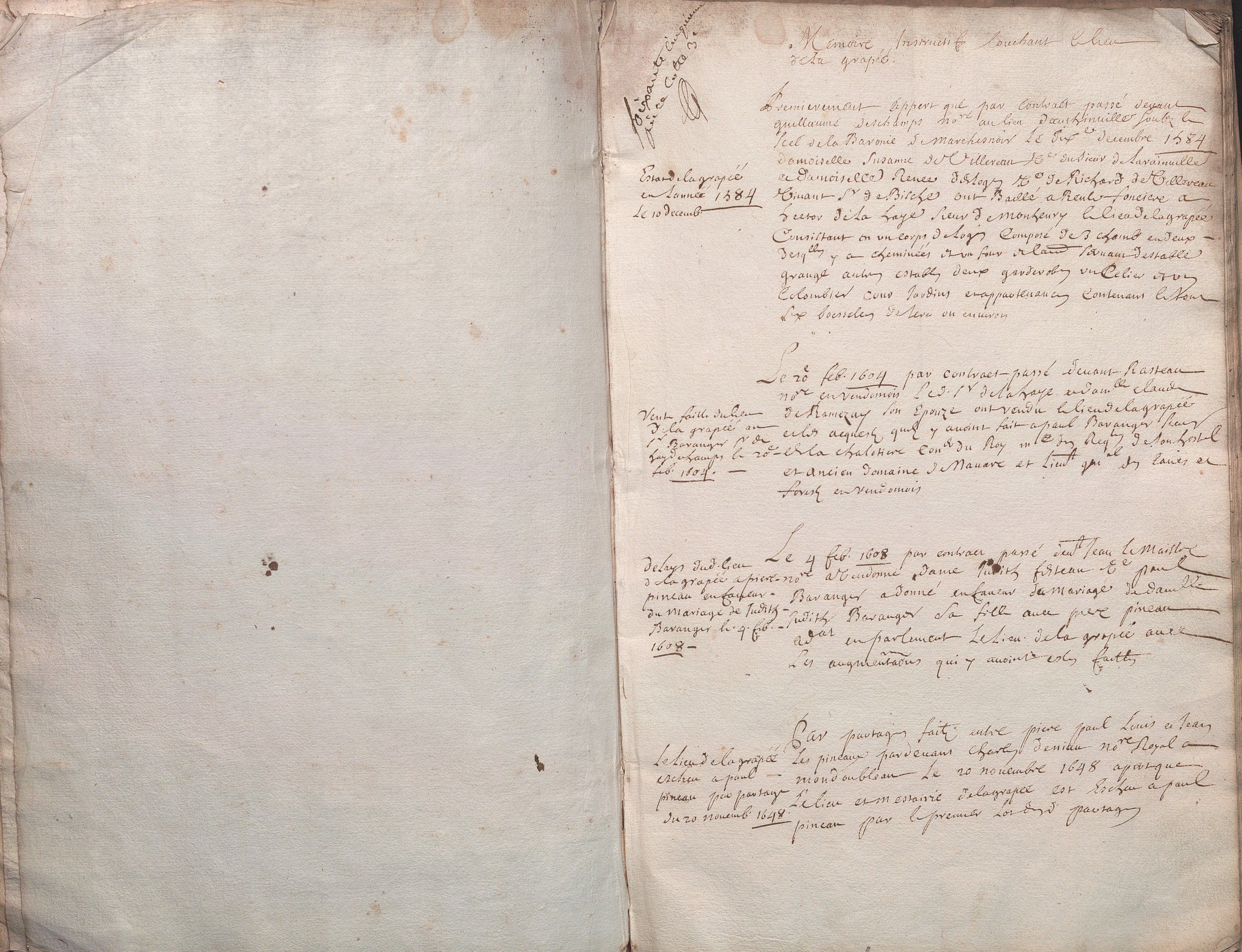MEMOIRE INSTRUCTIF DE LA METAIRIE DE LA GRAPPEE A LISLE EN VENDOMOIS, 17E SIECLE