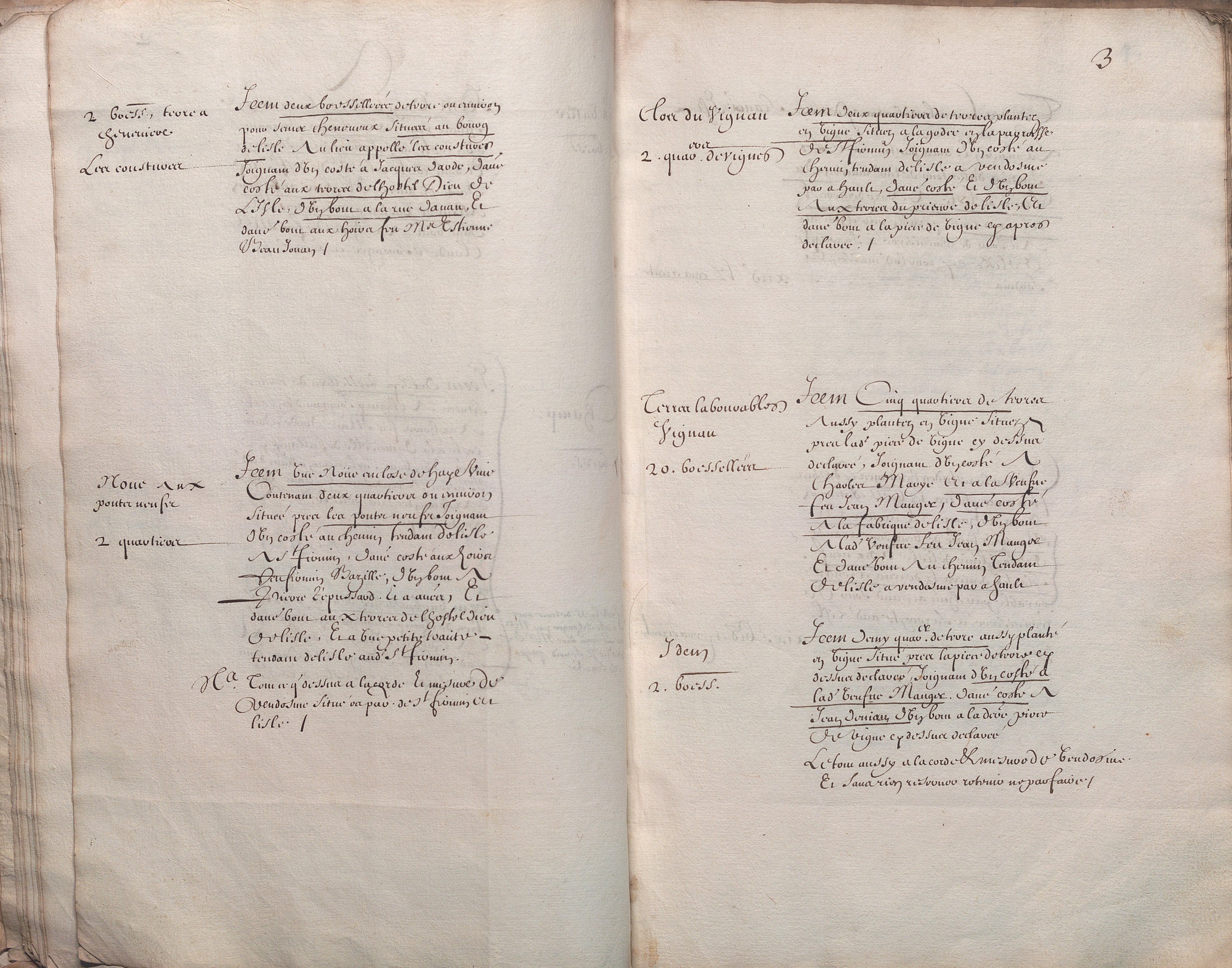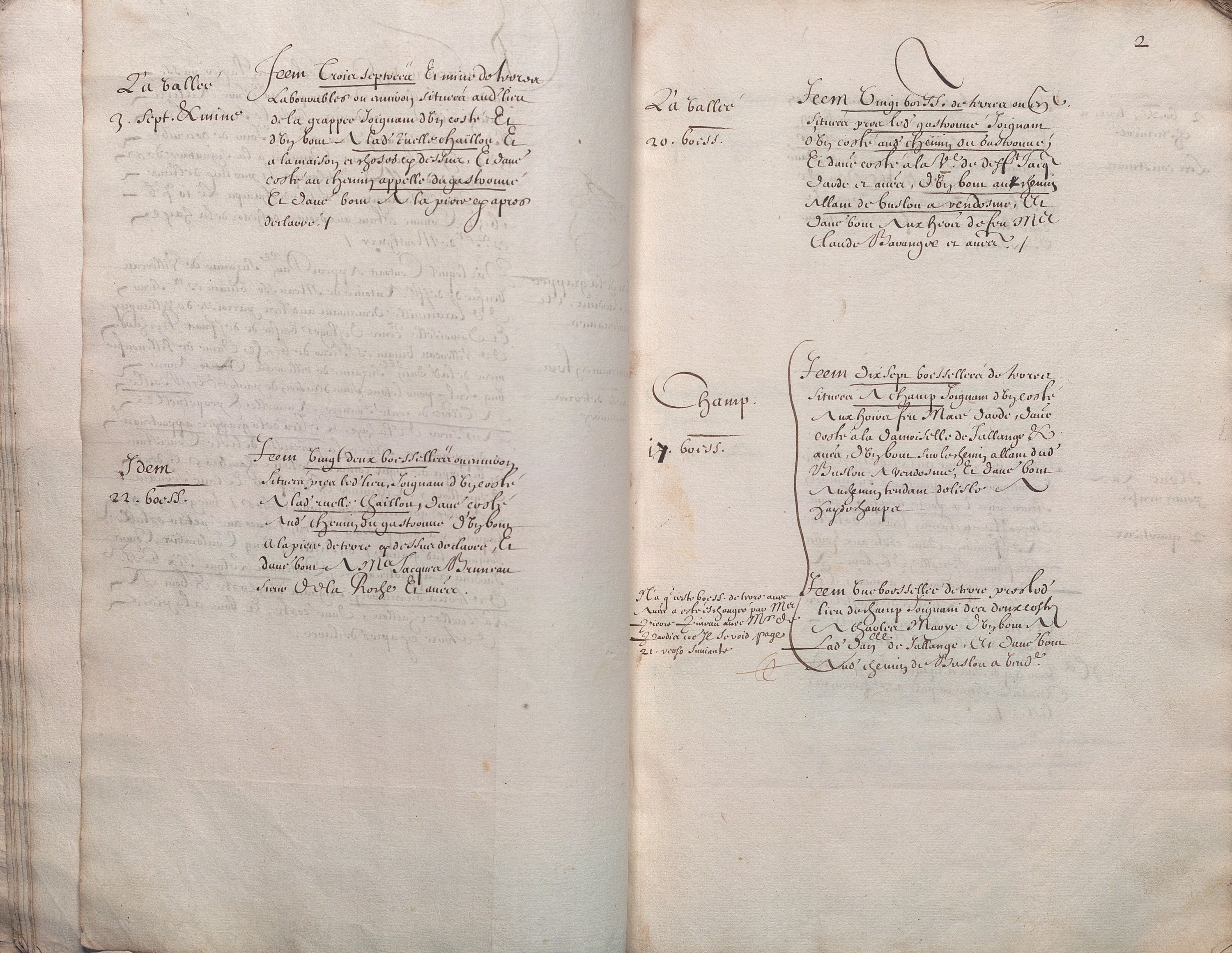 Rare manuscrit récapitulant tous les actes constituant le domaine de cette métairie et de son accroissement au cours des 16e et 17e siècles.