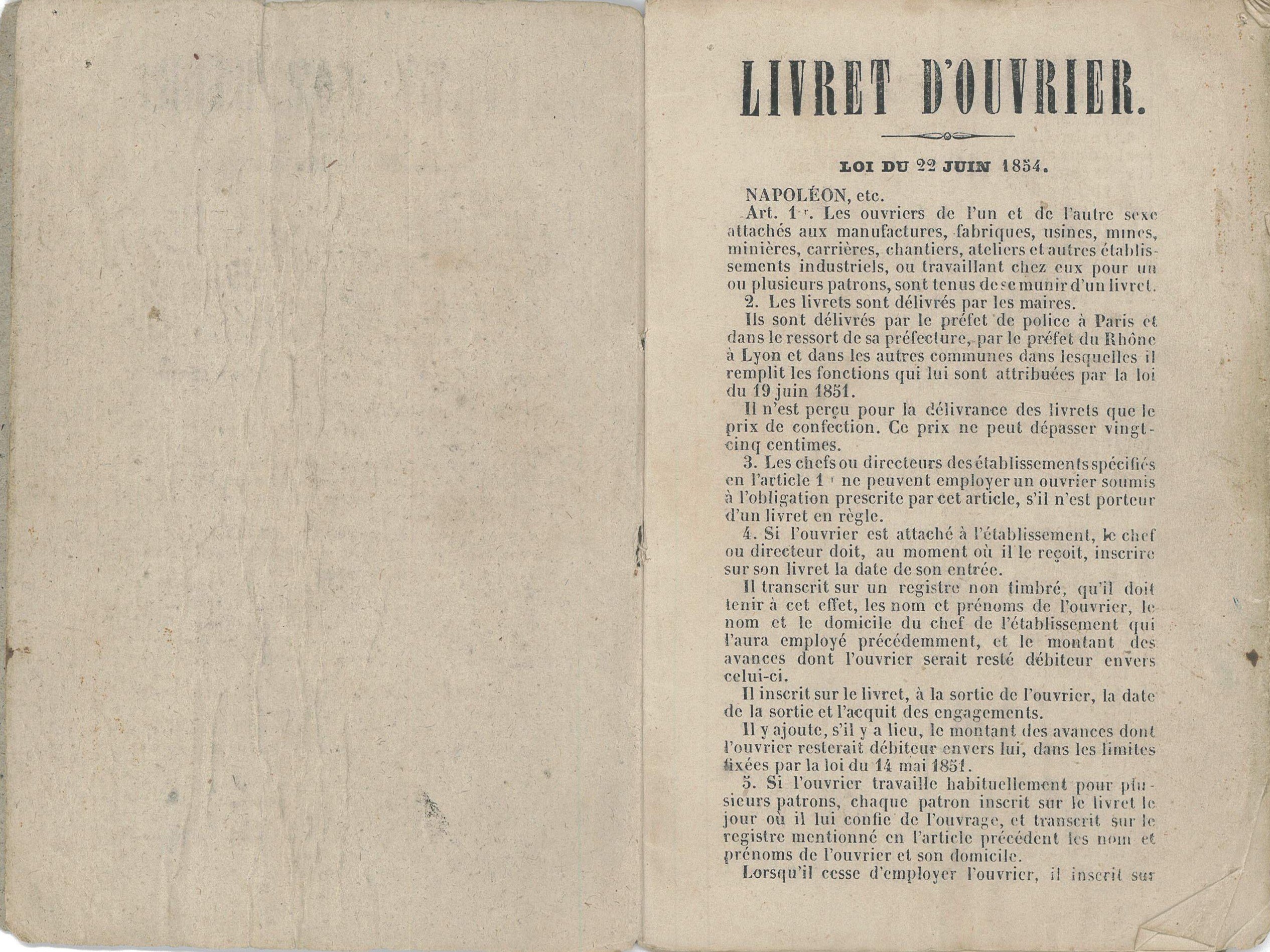 Joint : Livret d’ouvrier délivré à Ranville en 1871.