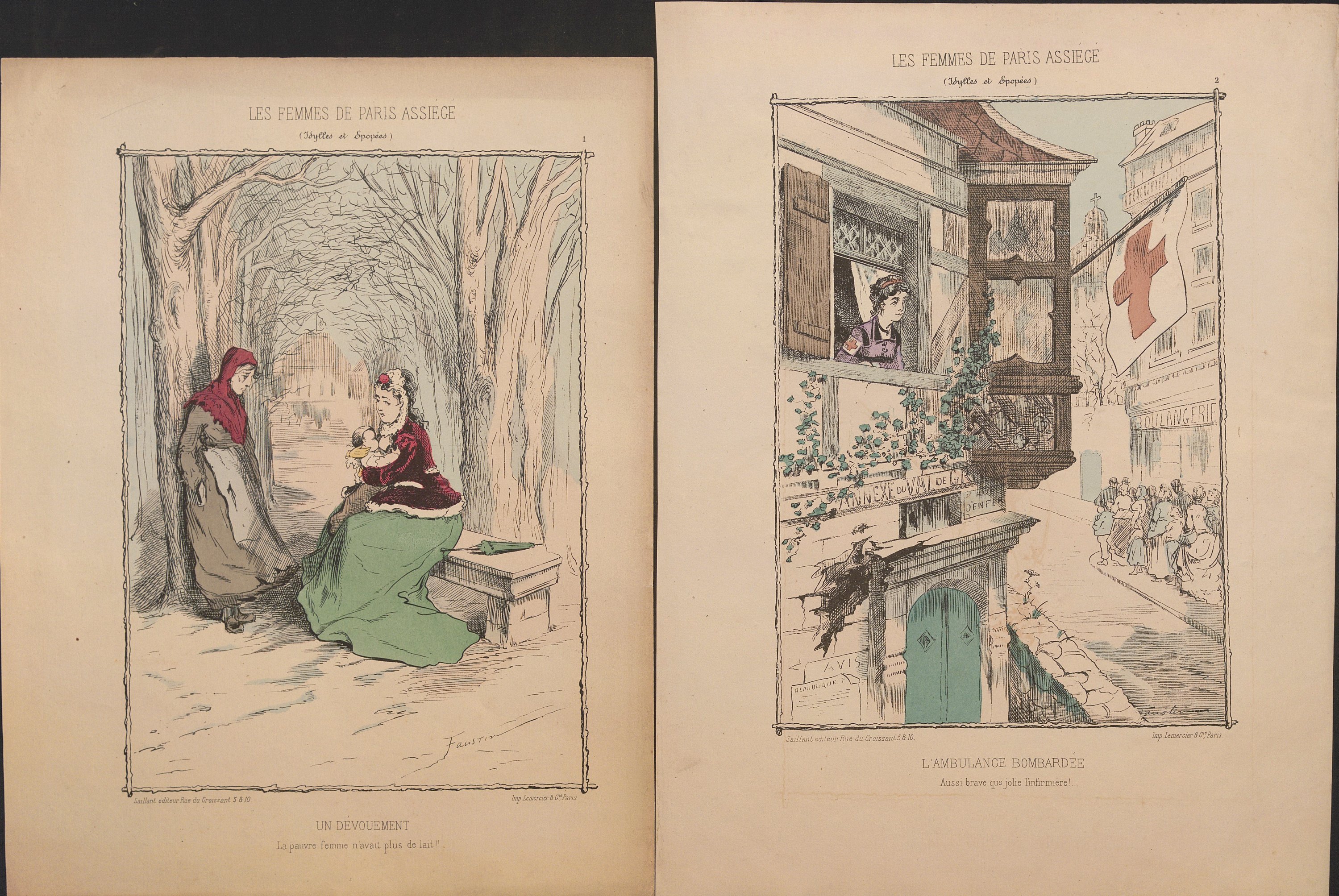 8 séries complètes: Les hommes d’église, série complète, n°1 à 4, env. 34,5 x 27 cm (petites déchirures en marge) Figures contemporaines/Figure de cire, série complète, n°1 à 4, 35 x 26 cm (déchirure) ; Les hommes du jour, série complète, n°1 à 3, 27,5 x 17,5 cm ; Nos Grrrands généraux, série complète, n°1 à 4, 35,5 x 26,5 cm, dont 1 pl. contrecollée sur feuillet ; Actualité, Maître et valet et La suite aux valets, série complète, 52 x 38,5 cm (pli central, petite déchirure et petit mque coin haut droit) ; Le Musée Homme ou le jardin des Bêtes, série complète, n°1 à 16, env. 32,5 x 24 cm ; Paris bloqué, série complète, n°1 à 24, env. 32 x 25 cm (rest. à 1 pl., petites déchirures en marge à qqs pl.) ; Les femmes de Paris assiégé, série complète, n°1 à 8, env. 32,5 x 24,5 cm.