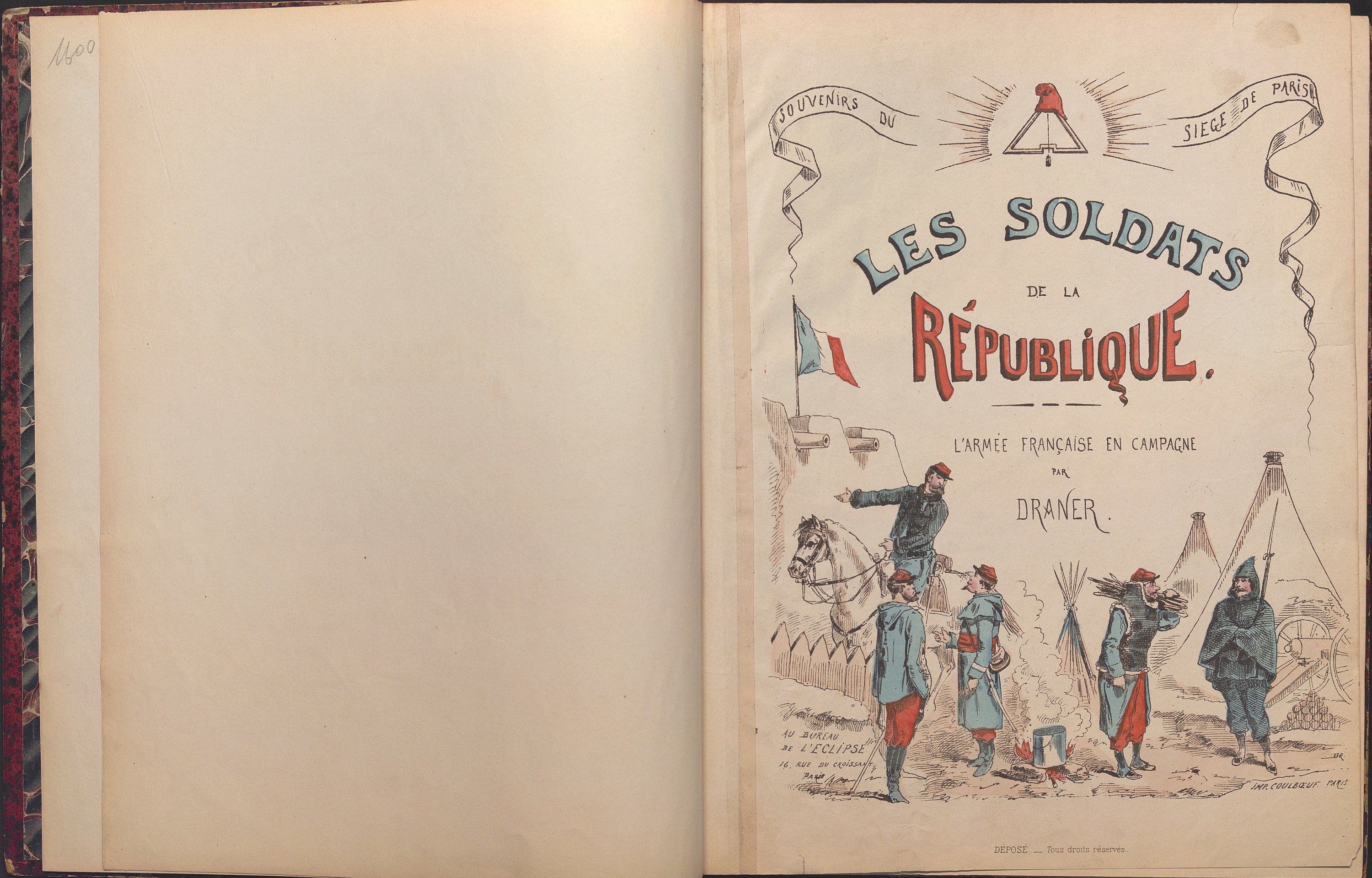 Jules Renard dit Draner (1833-1890), Souvenirs du Siège de Paris. Les Défenseurs de la Capitale. [Suivi de] Paris assiégé. Vie parisienne. [Suivi de] Les Soldats de la République. L'Armée française en Campagne.? Paris, Au Bureau de L'Eclipse, [1871-1872]. In-4 rel. ½ chagr. rouge, 2 ff. (titre) et 31 pl., 2 ff. (titre) et 31 pl.- 2 ff. (titre) et 31 pl. Complet des 96 pl. en couleurs montées sur onglets (qqs rouss., rest. à 1 pl.) B.E. à T.B.E.