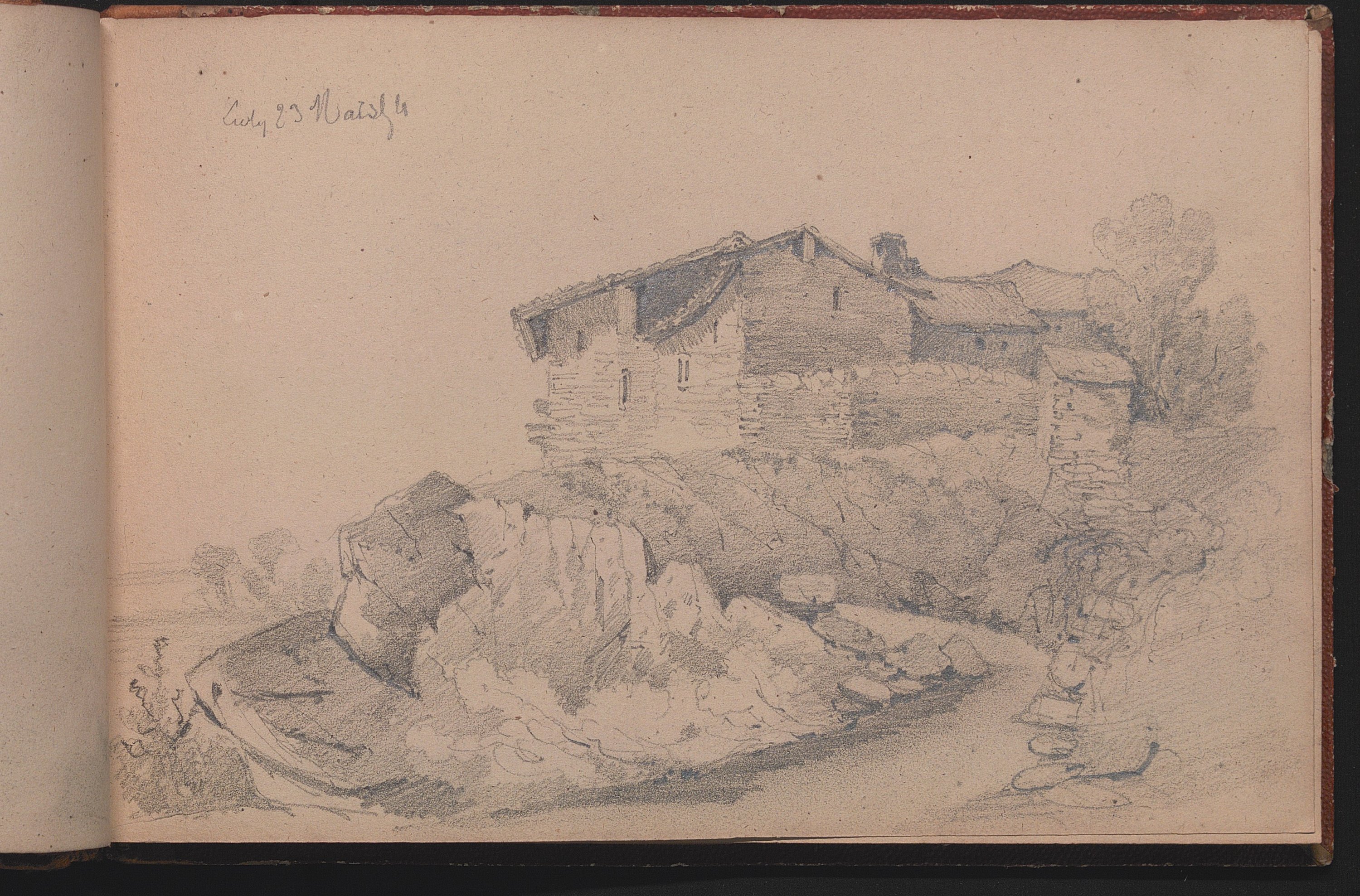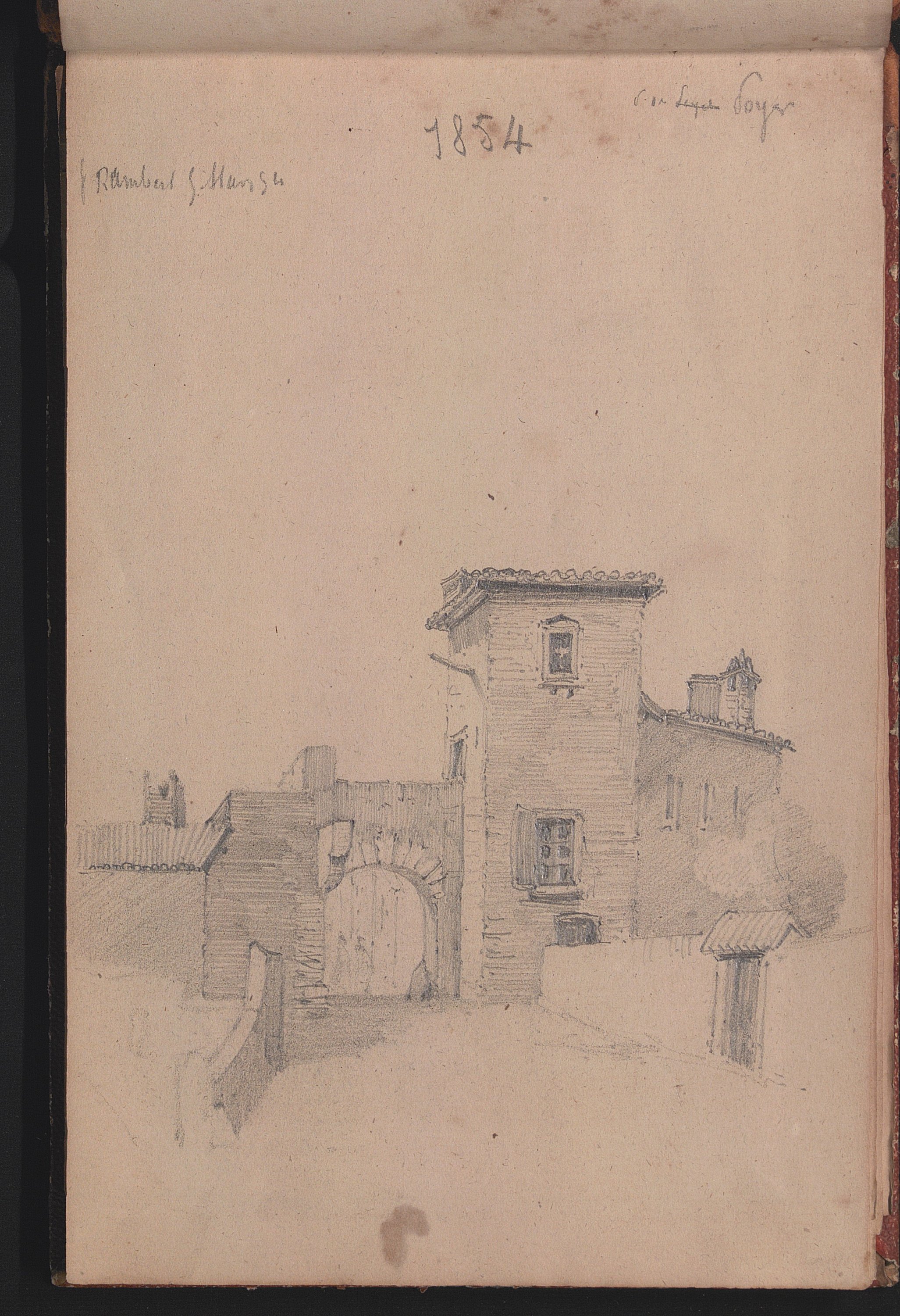 Album à l’italienne, rel. ½ basane, 16 x 24 cm, 1854-1862, contenant env. 53 dessins à la mine de plomb, la plupart datés et légendés dont vues de Saint Rambert d’Albon (Drôme), Montrond les Bains (Doubs), environs de Montbrison (Curtieux, Lérigneux, Roche ), etc.