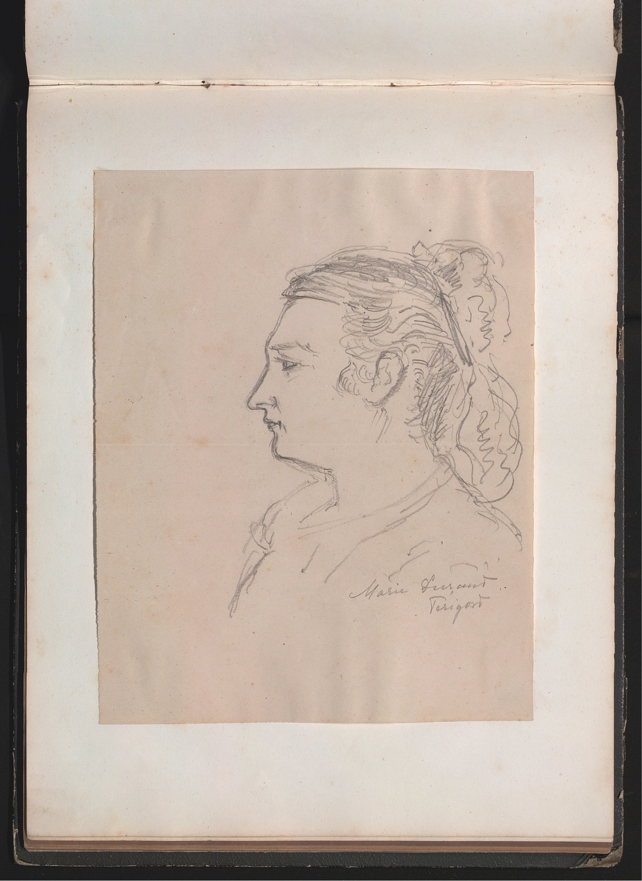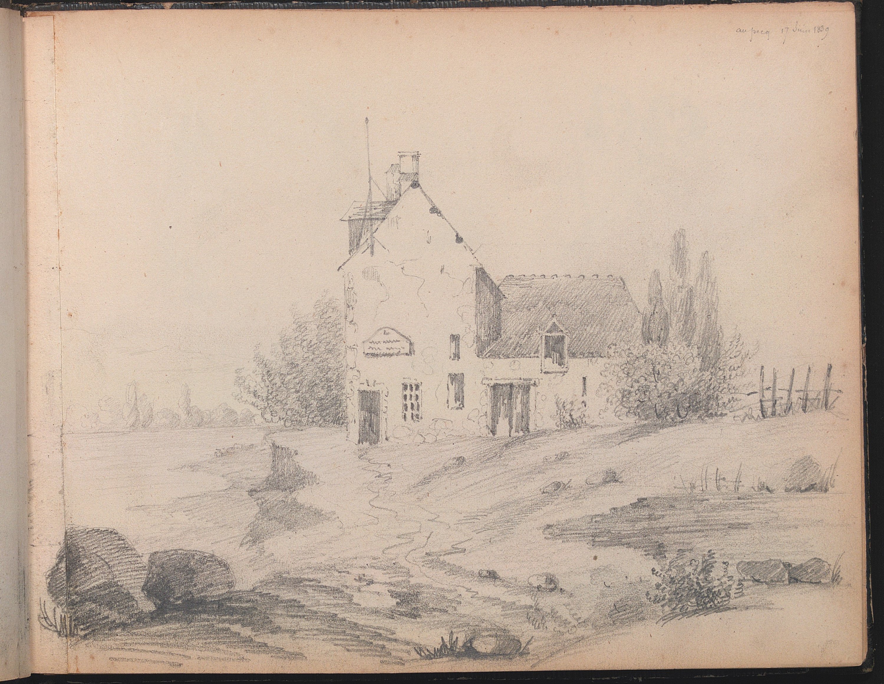 Album à l’italienne, rel. ½ basane bleu nuit, 19 x 24 cm, 1839-1850, contenant env. 78 dessins à la mine de plomb, certains datés et légendés dont vues de la porte d’Amiens à Arras, Sainte-Catherine, Saint Nicolas les Arras et Dainville (Pas-de-Calais), Anzin (Nord), Le Mettet (Wallonie), La Ferté Saint Jouarre (Seine et Marne), Le Pecq (Les Yvelines), nombreux personnages de littérature ;