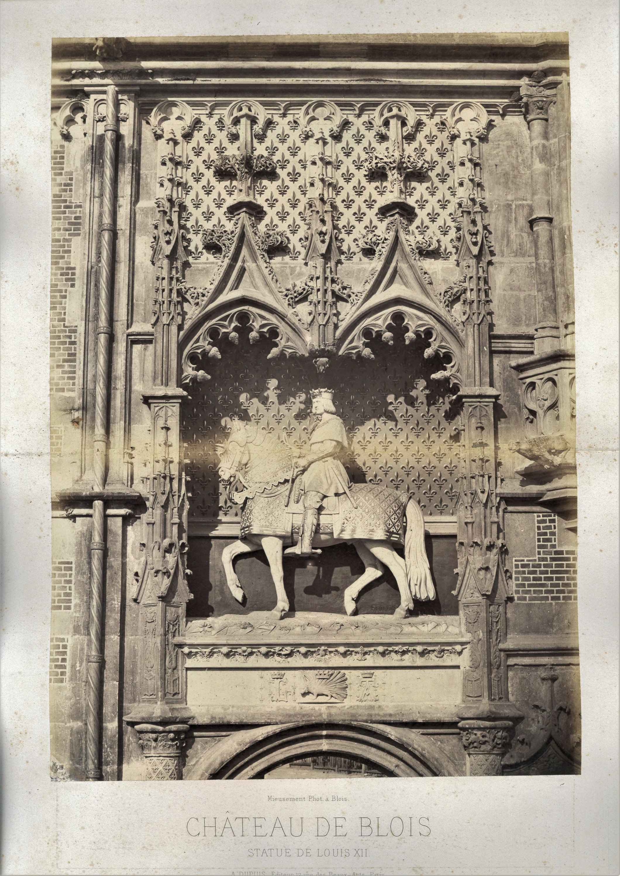 Château de Blois : cheminée du salon de la Reine, partie de façade François Ier, cheminée de la salle des gardes, cheminée à la salamandre de la salle du conseil, cheminée de la chambre à coucher du roi, cheminée aux armoiries, statue de Louis XII, pavillon Louis XII, soubassement de l’escalier, escalier François Ier ;