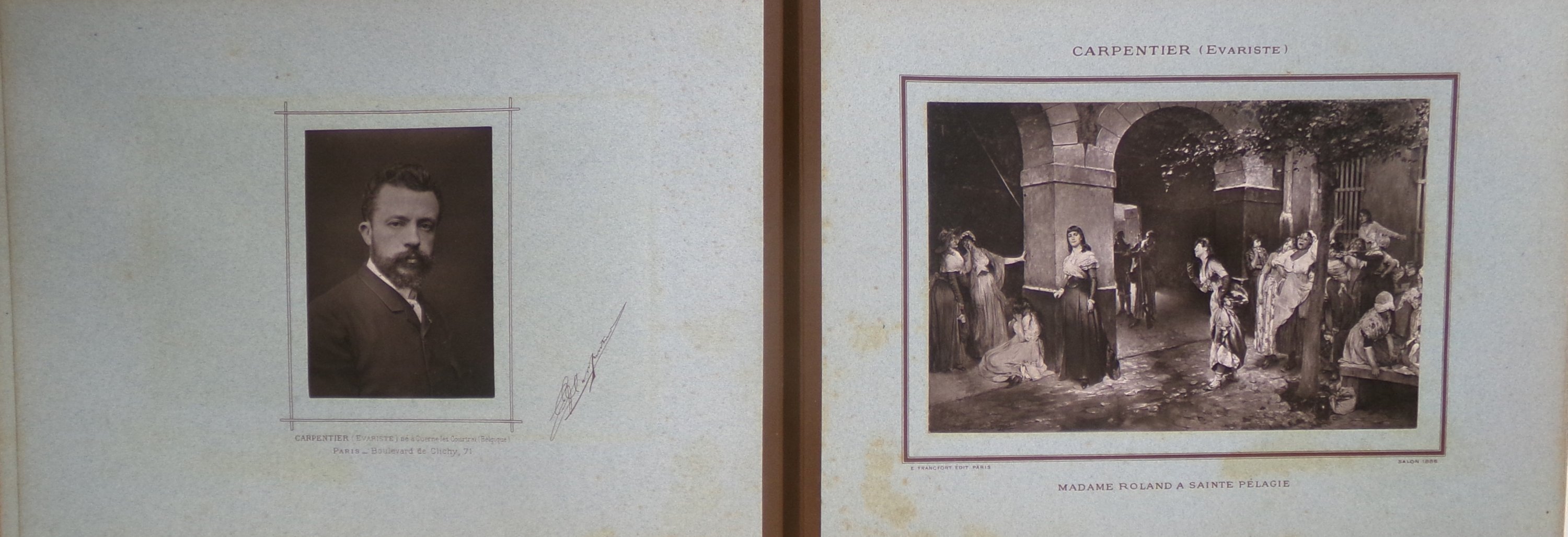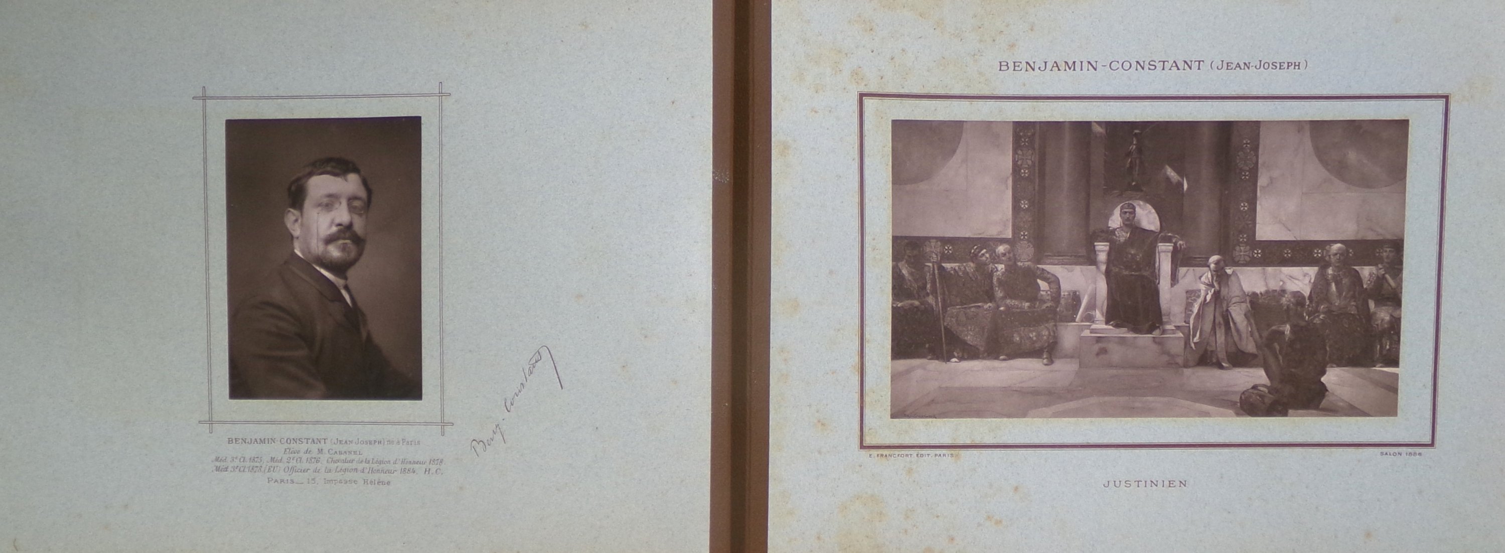 Chaque album contient une page de titre lithographiée et une vingtaine de feuillets de carton fort contrecollés sur chaque face d'une photo en noir d'un tableau et d'un portrait photographique du peintre en regard, légendes imprimées en dessous, l'ensemble monté sur onglets. Table en fin de volume.