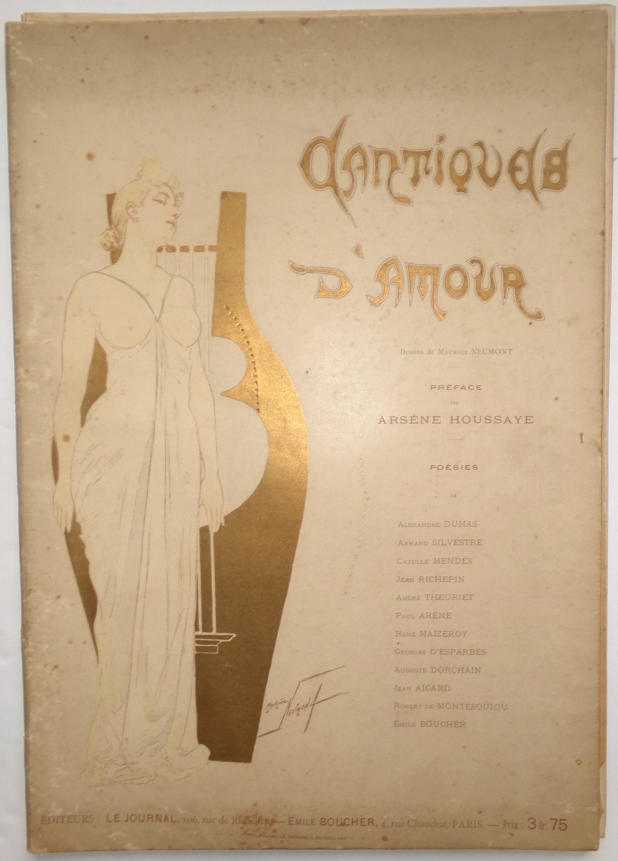 Cantiques d’Amour, dessins de Maurice Neumont. Paris, Le Journal, 1894. Grand in-fol., cartonnage, jaquette de l’éditeur. 12 pl. de poésies illustrées ;