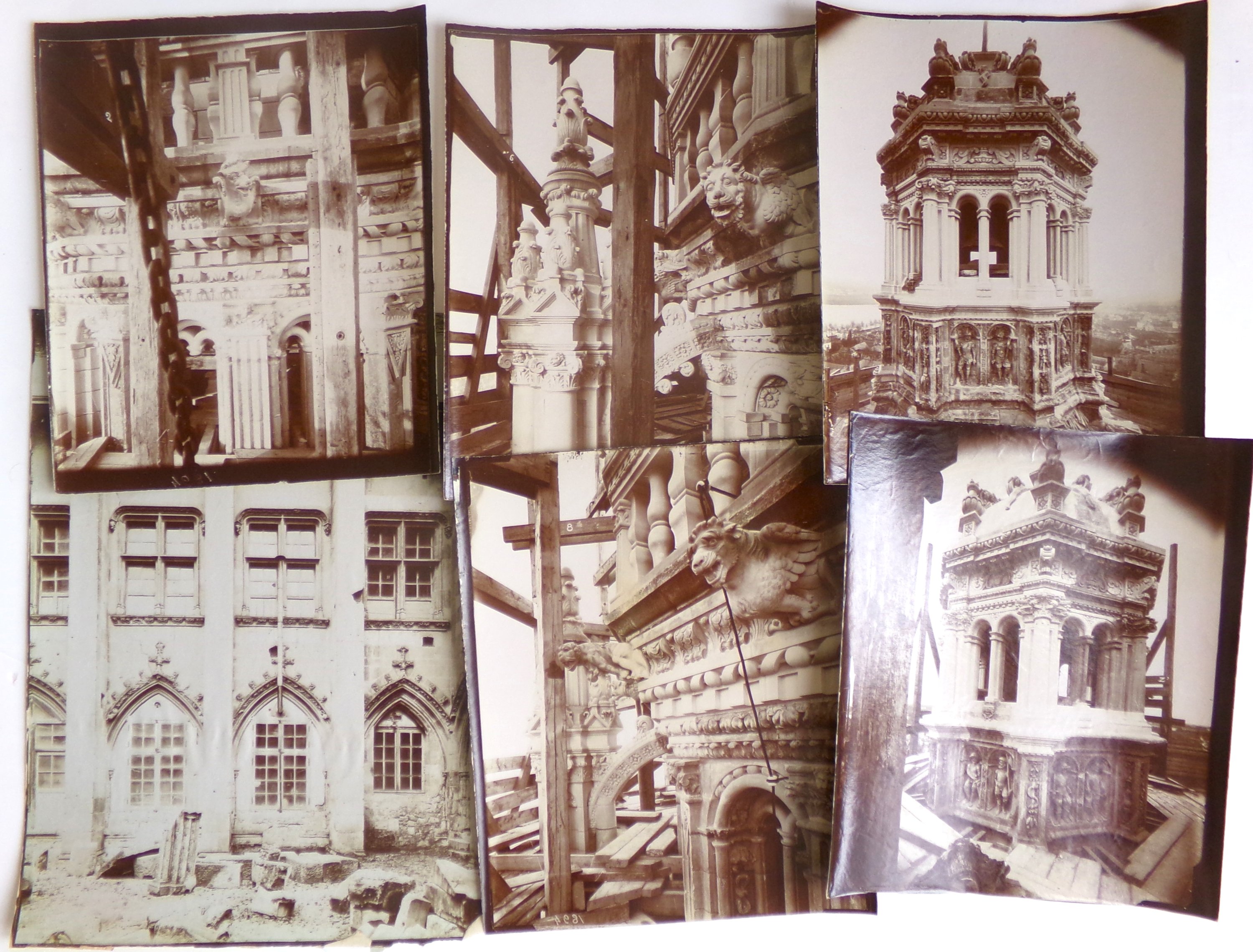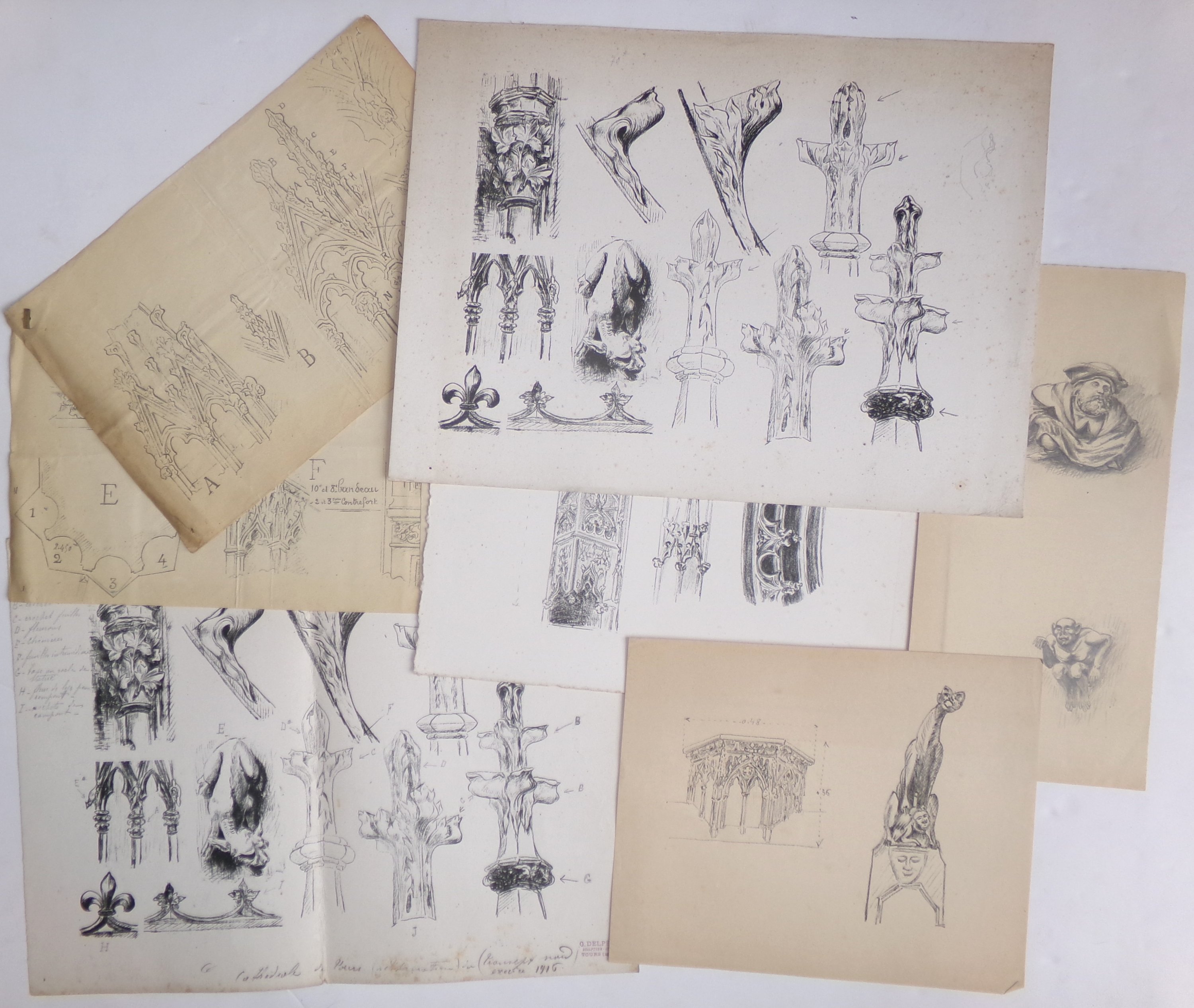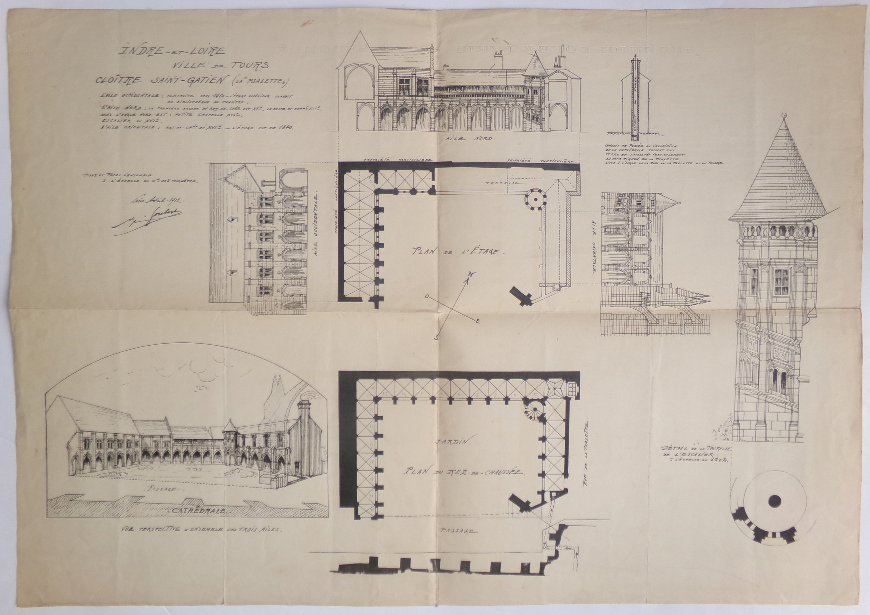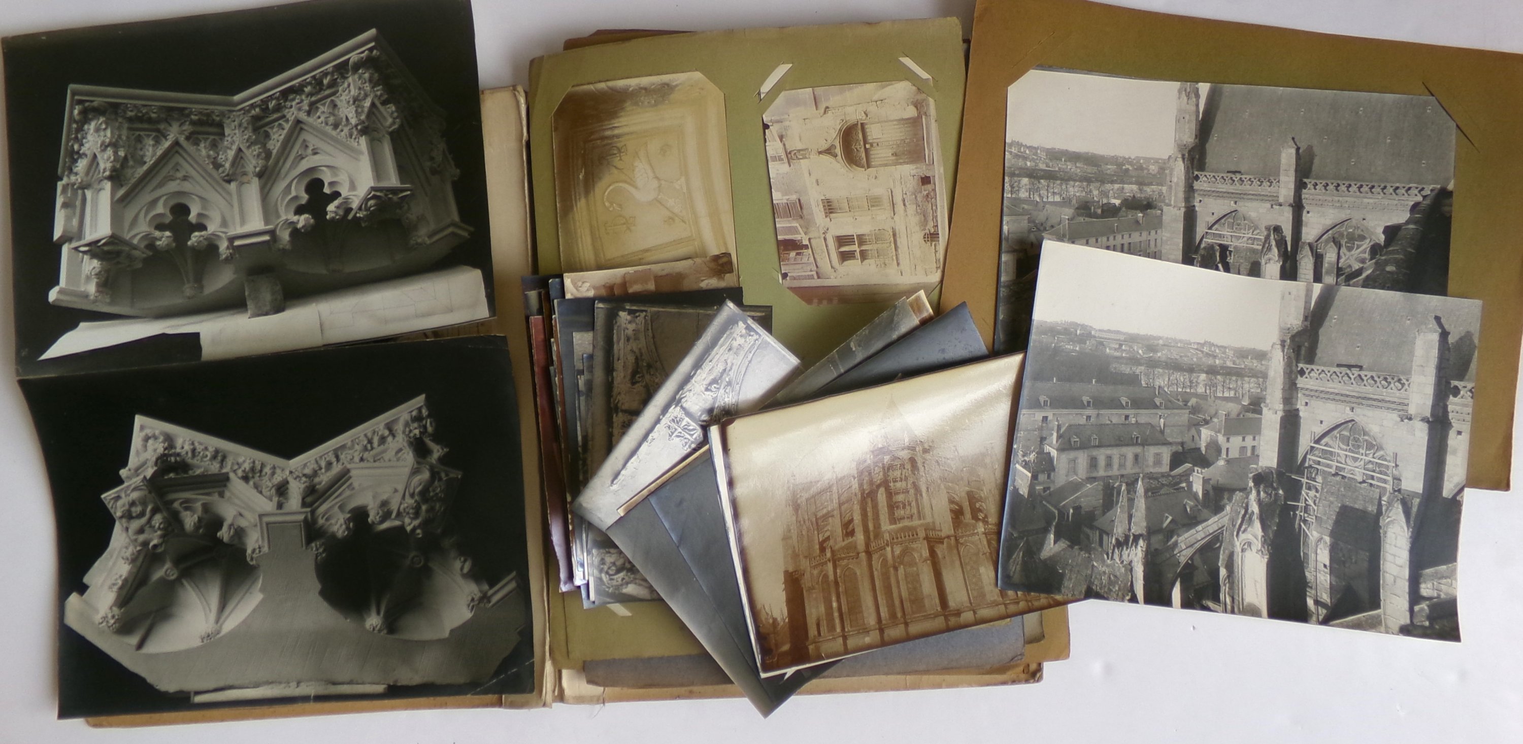 • Monuments à restaurer, années 1910-1930: croquis et plans et + de 300 photographies d’éléments architecturaux et parties de monuments à restaurer et restaurés en majorité de la cathédrale Saint Gatien de Tours, mais aussi chapelle des lazaristes, cloître de la Psalette à Tours, allégories du château d’Artigny, etc.