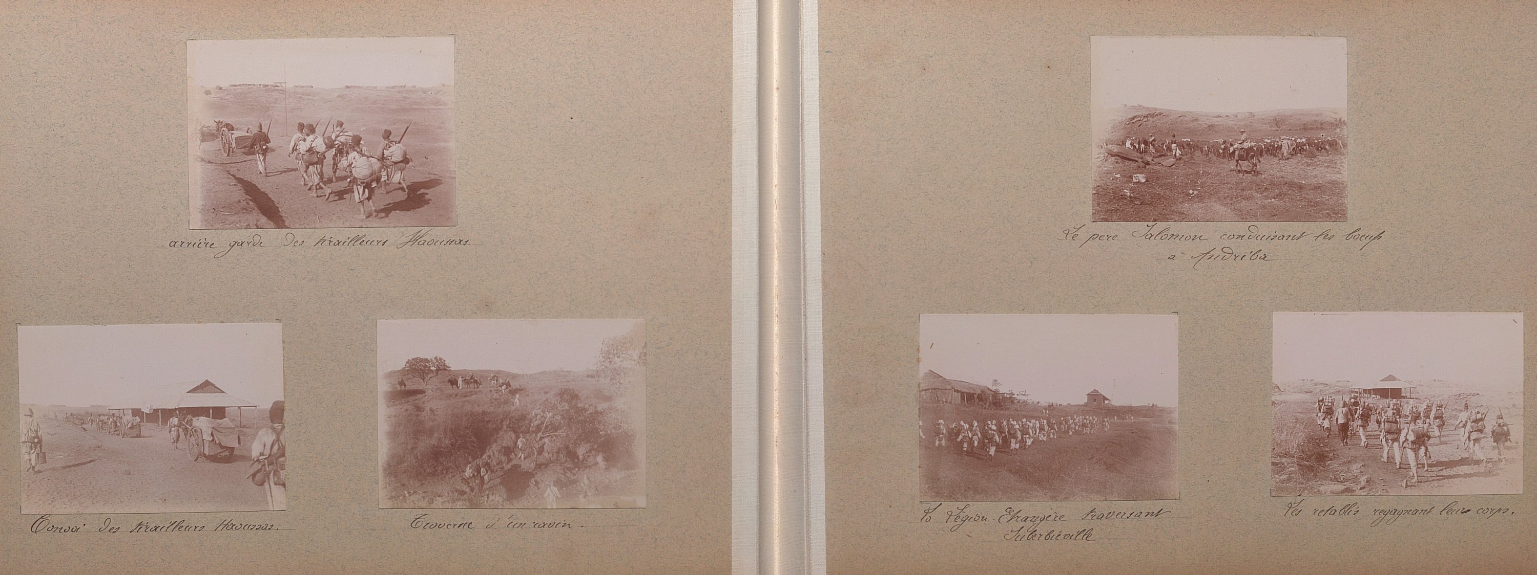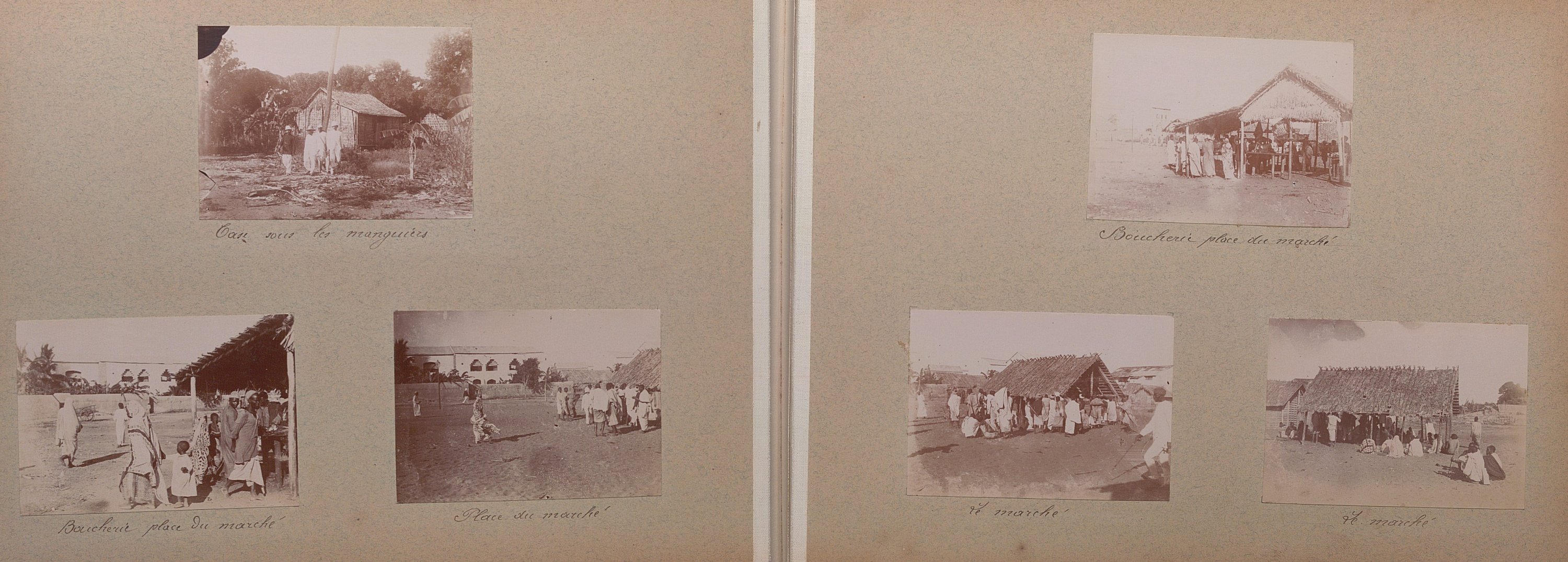 Album photo à l’italienne, 21 x 26 cm, contenant env. 250 clichés photographiques, 6x 8 cm, contrecollés sur carton fort, tous légendés et classés ; rare et bel ensemble de photographies témoignant de l’expédition militaire française qui se déroule à Madagascar au cours du premier semestre 1895, dont:
