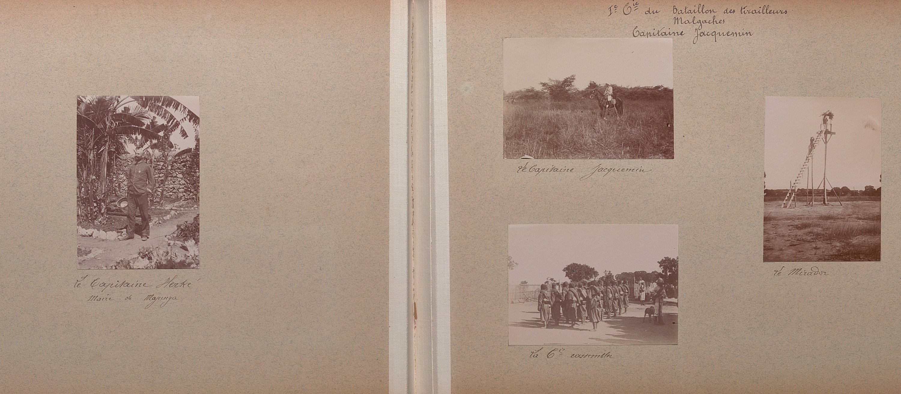 « 1ère compagnie du bataillon des tirailleurs malgaches Capitaine Jacquemin » (marches, exercices de tir, sentinelles,) ;