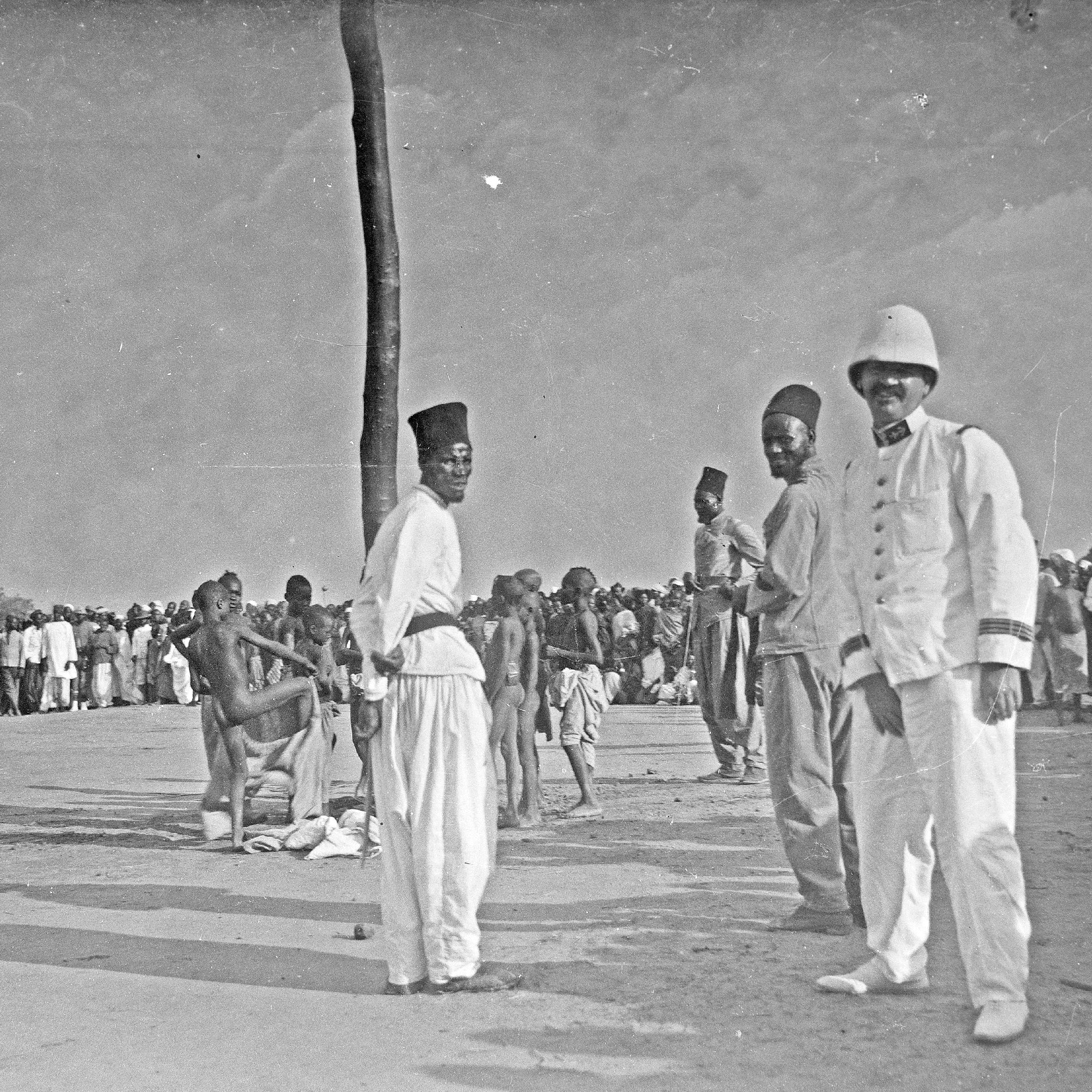 Les plaques photographiques Pathé: elles sont parmi les rarissimes documents photographiques des années 1907-1910 sur ces régions déjà en pleine ébullition. Les quelques officiers français, accompagnés par plus de 200 tirailleurs sénégalais, ont pour double mission de pacifier et de coloniser le Ouaddaï, le Botha et le Dagana, et d’y faire cesser le traditionnel et florissant commerce des esclaves, pour la plupart razziés au Soudan, vendus dans les villes du Tchad et du Niger actuels, puis conduits par les Touaregs à travers le Sahara vers l’Afrique du Nord et le Moyen Orient. Landeroin connait bien le sujet: il a séjourné pendant quatre ans, un peu plus au Nord, à Zinder dont la population, en 1904, comptait 12000 esclaves sur ses 22000 habitants.