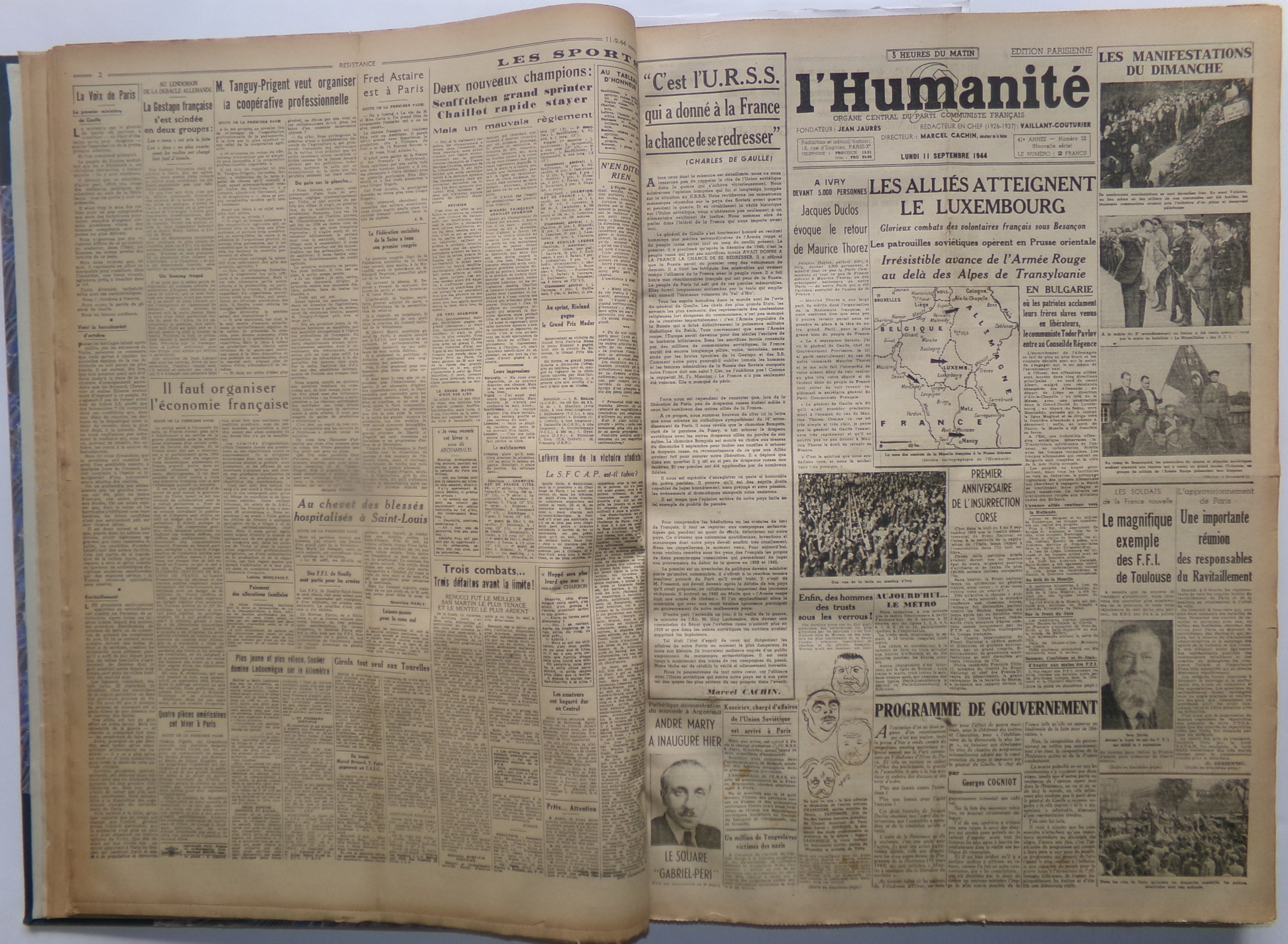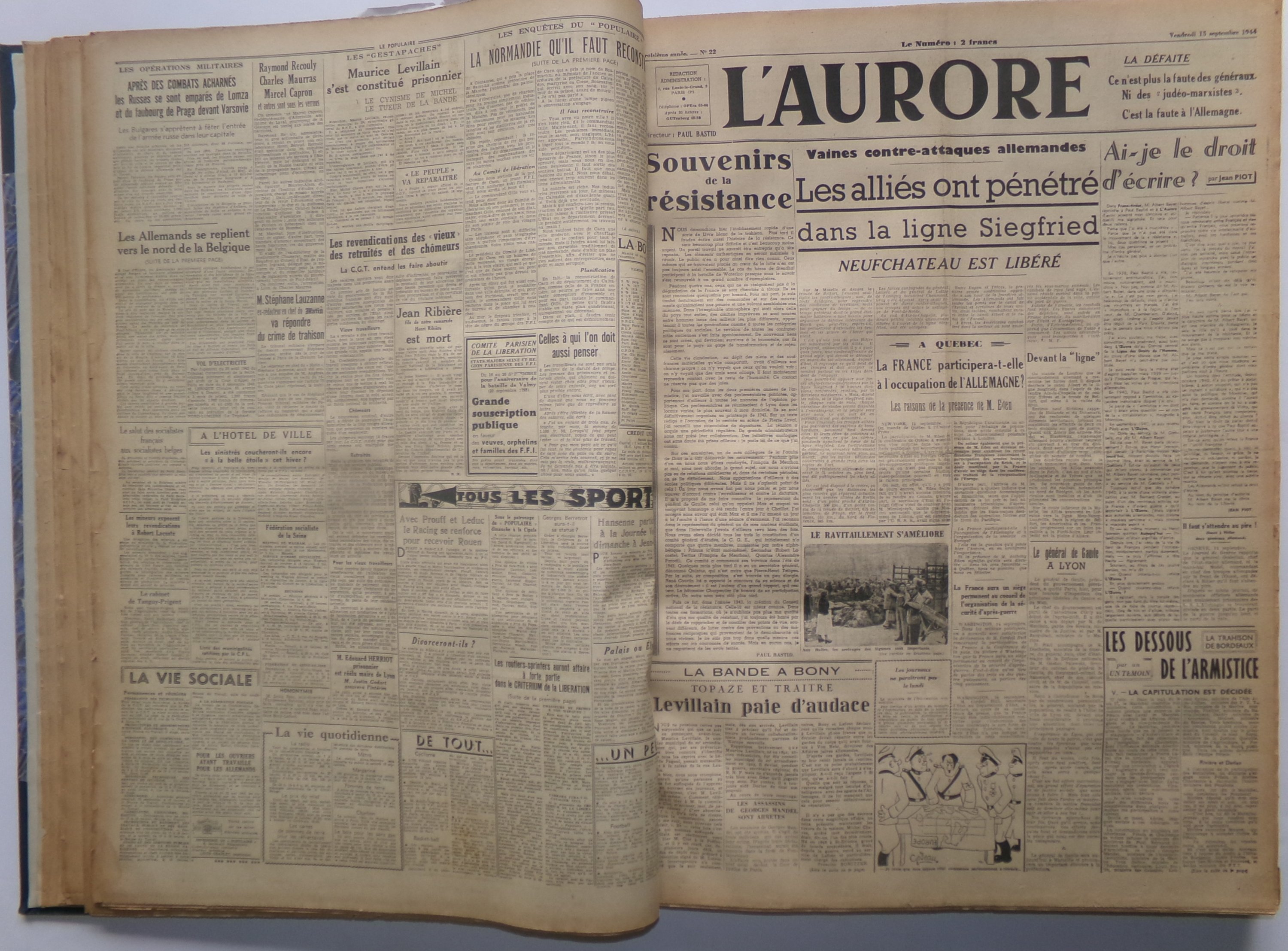 recueil de divers titres de journaux parus à partir du 24 août 1944 jusqu’au 23 novembre 1944.