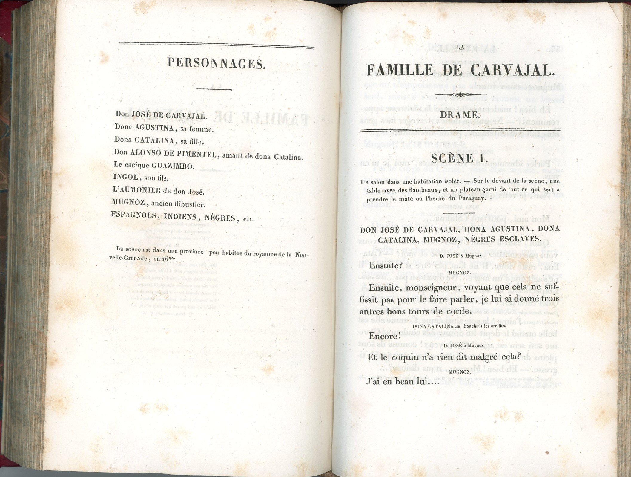 La Jacquerie, scènes féodales, suivies de la Famille de Carjaval, drame. Par l'auteur du théâtre de Clara Gazul. Paris, Brissot-Thivars, 1828. In-8, rel. ½ basane rouge (frottements), 423 pp.
