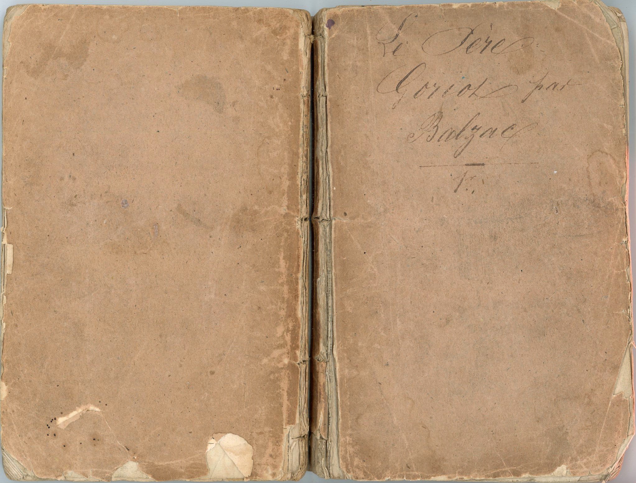 Le Père Goriot, histoire parisienne. 2 vol. Paris, librairie de Werdet et Spachmann, 1835. In-8 broch. (dos cassés), 336 et 374 pp. (qqs pages dérel. et rest. anc., rousseurs, qqs manques en coin) (manque page de titre « Une pension bourgeoise » dans le 1er tome)