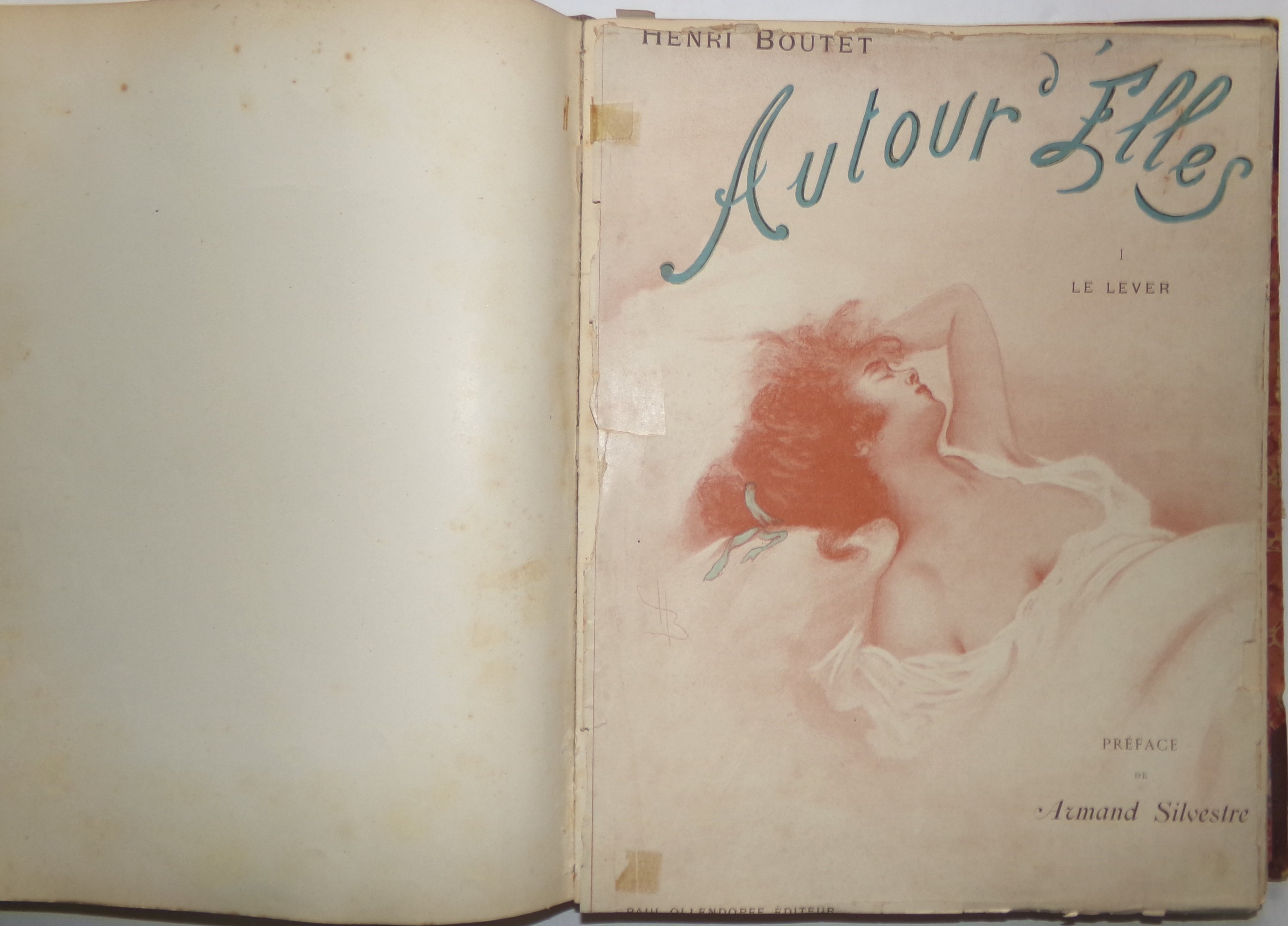 Recueil factice en 1 vol. rel. grand in-4 contenant 8 albums édités par H. Simonis Empis à Paris: Mes Campagnes ill. par Albert Guillaume ; Etoiles de Mer ill. par A. Guillaume ; Femmes de Théâtre ill. par Ferdinand Bac ; Nos femmes ill. par F. Bac ; Les Alcôves ill. par F. Bac ; Autour d’Elles Le Lever I ill. par Henri Boutet ; Autour d’Elles Les modèles II ill. par H. Boutet ; Autour d’Elles Le coucher III ill. par H. Boutet.