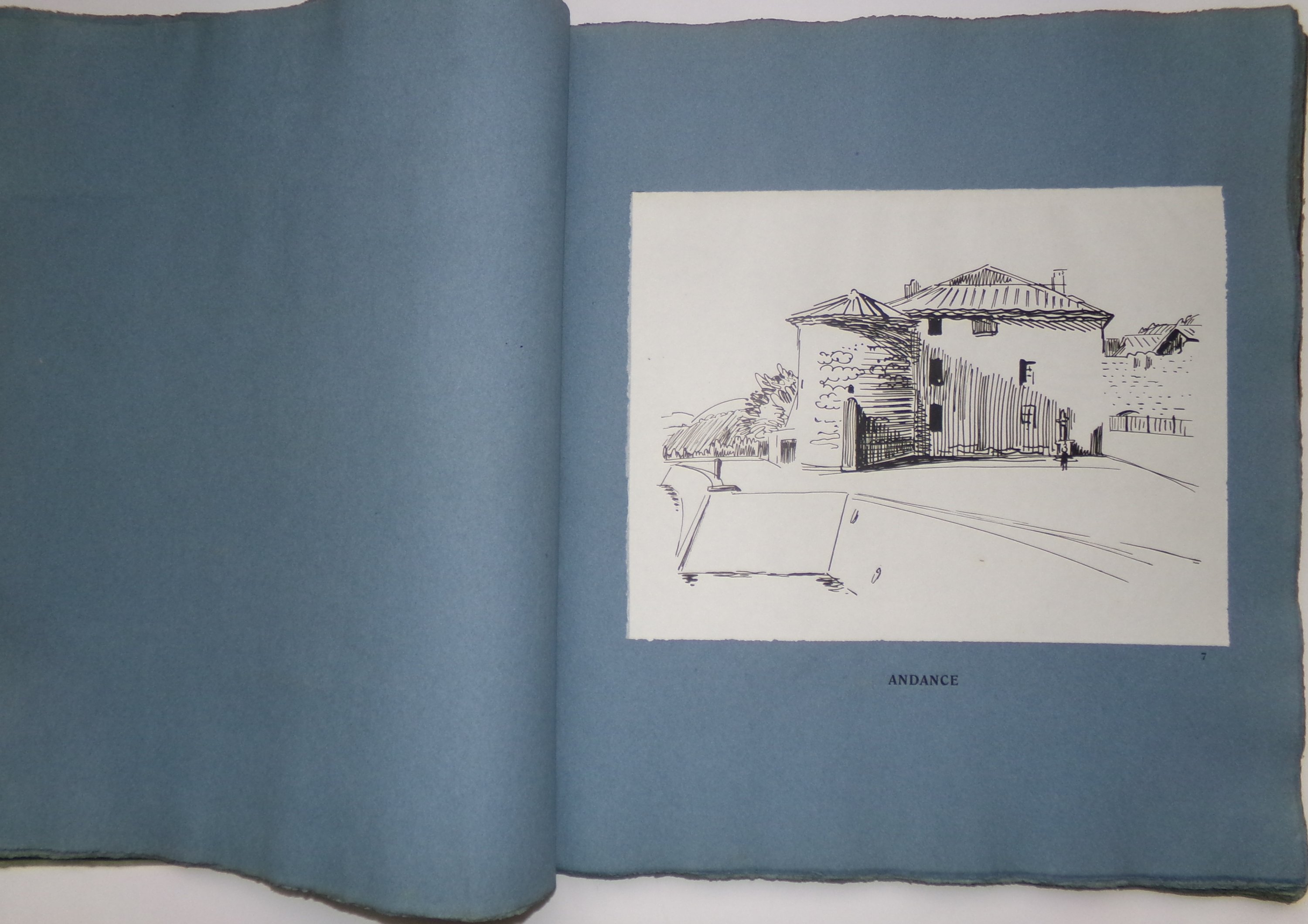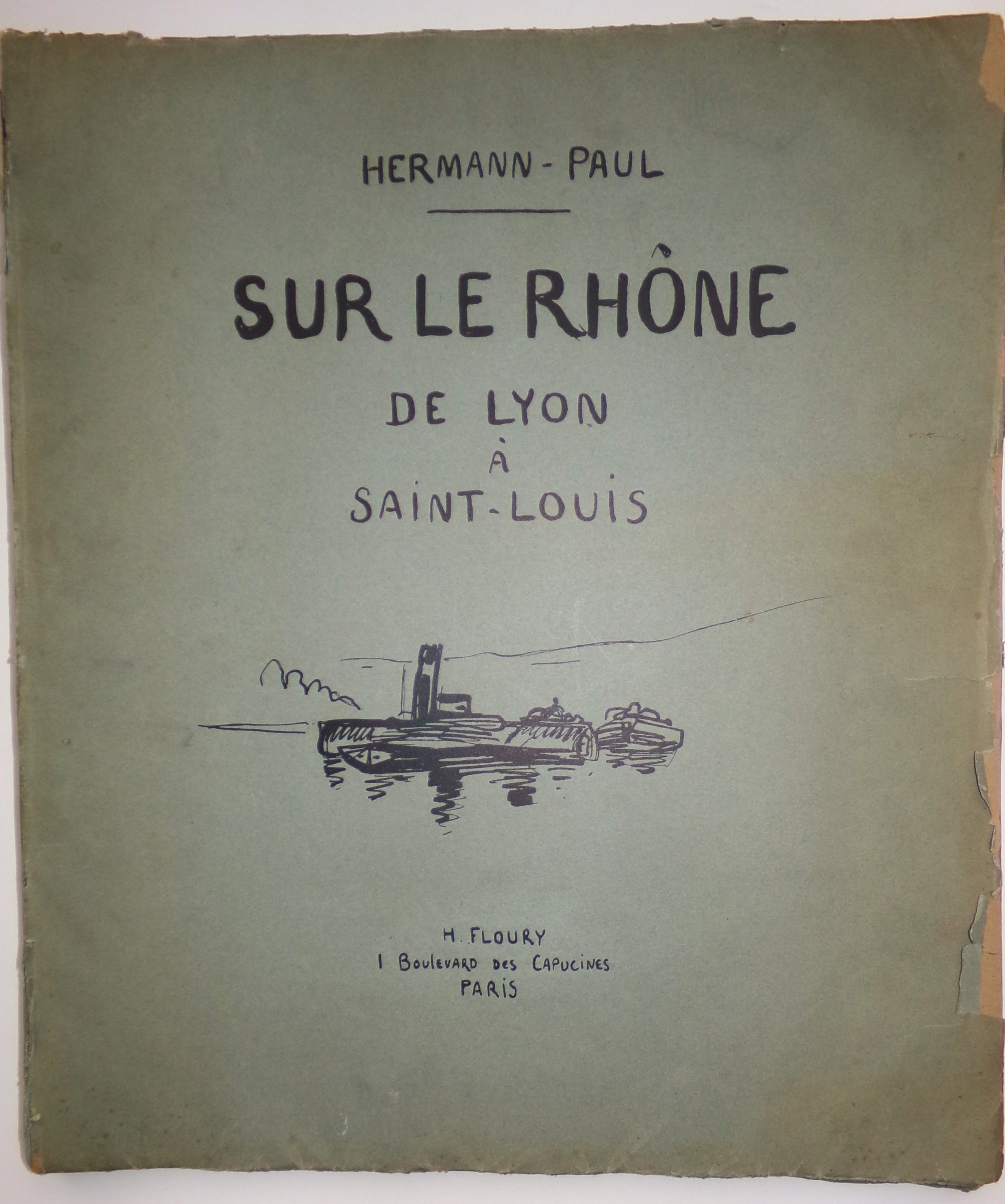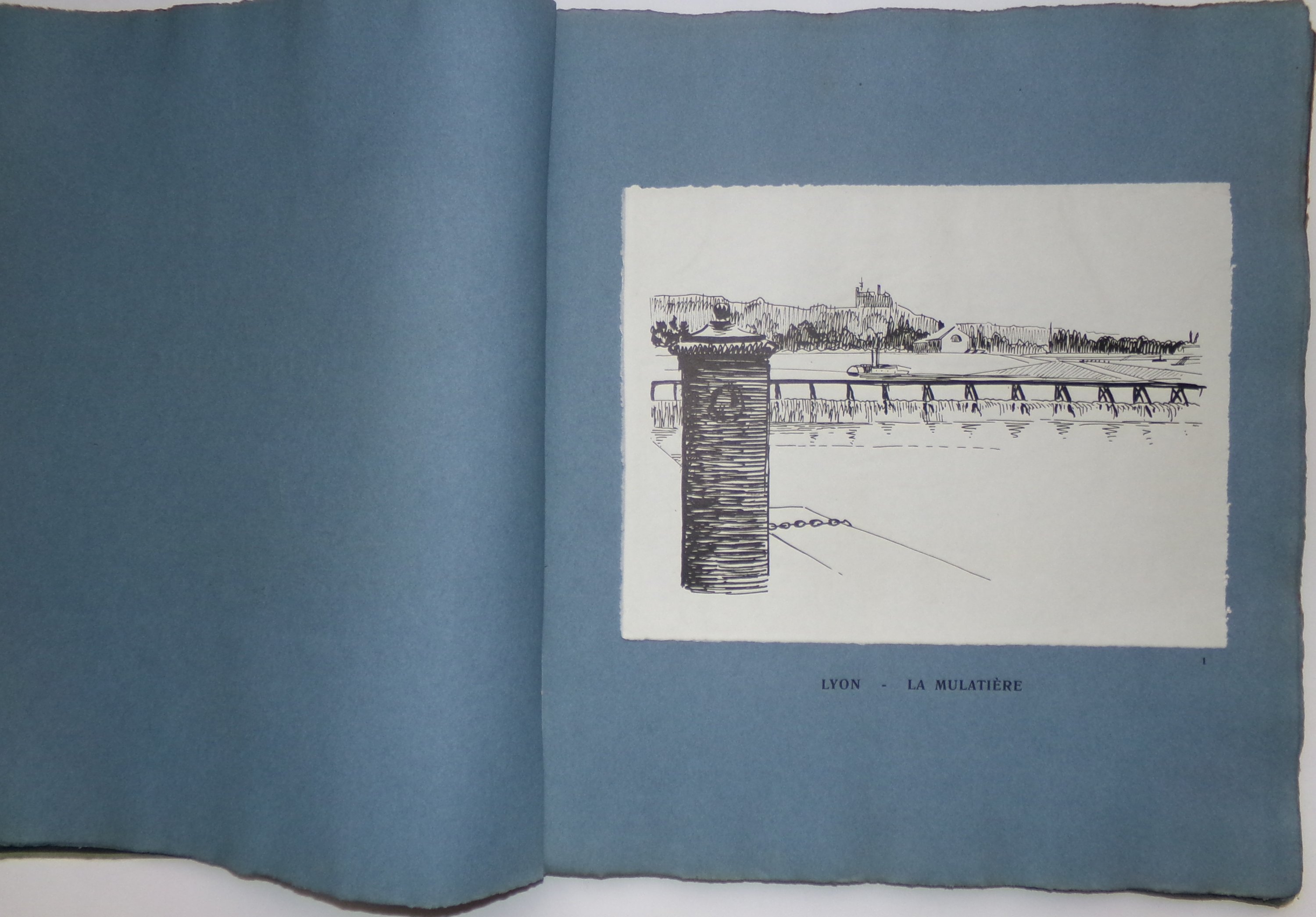 Sur le Rhône, de Lyon à Saint-Louis. Paris, H. Floury, s.d. Broch. in-plano (usures à la couv.), 51 gravures sur bois montées sur papier bleuté. Ex. n°51/300.