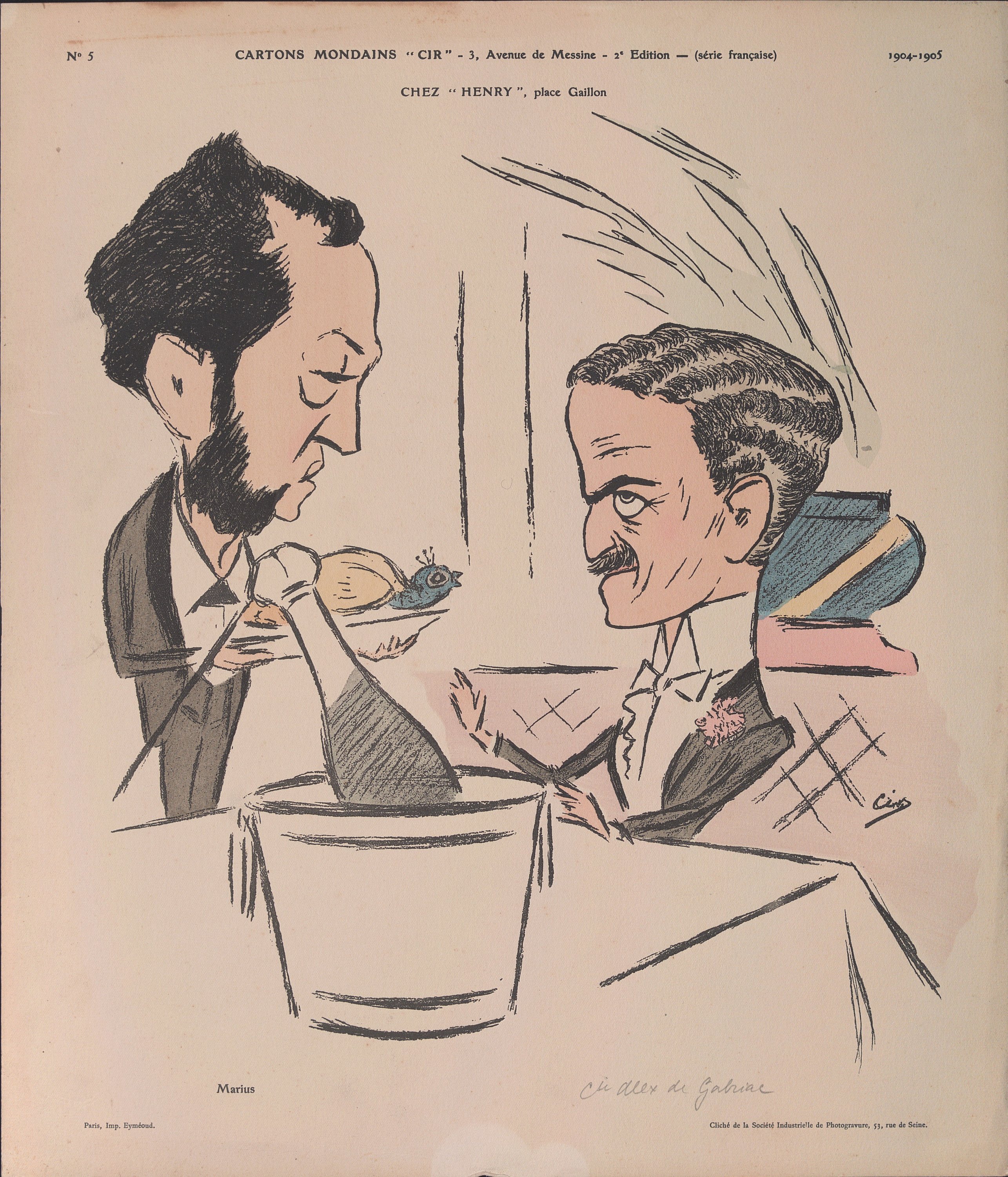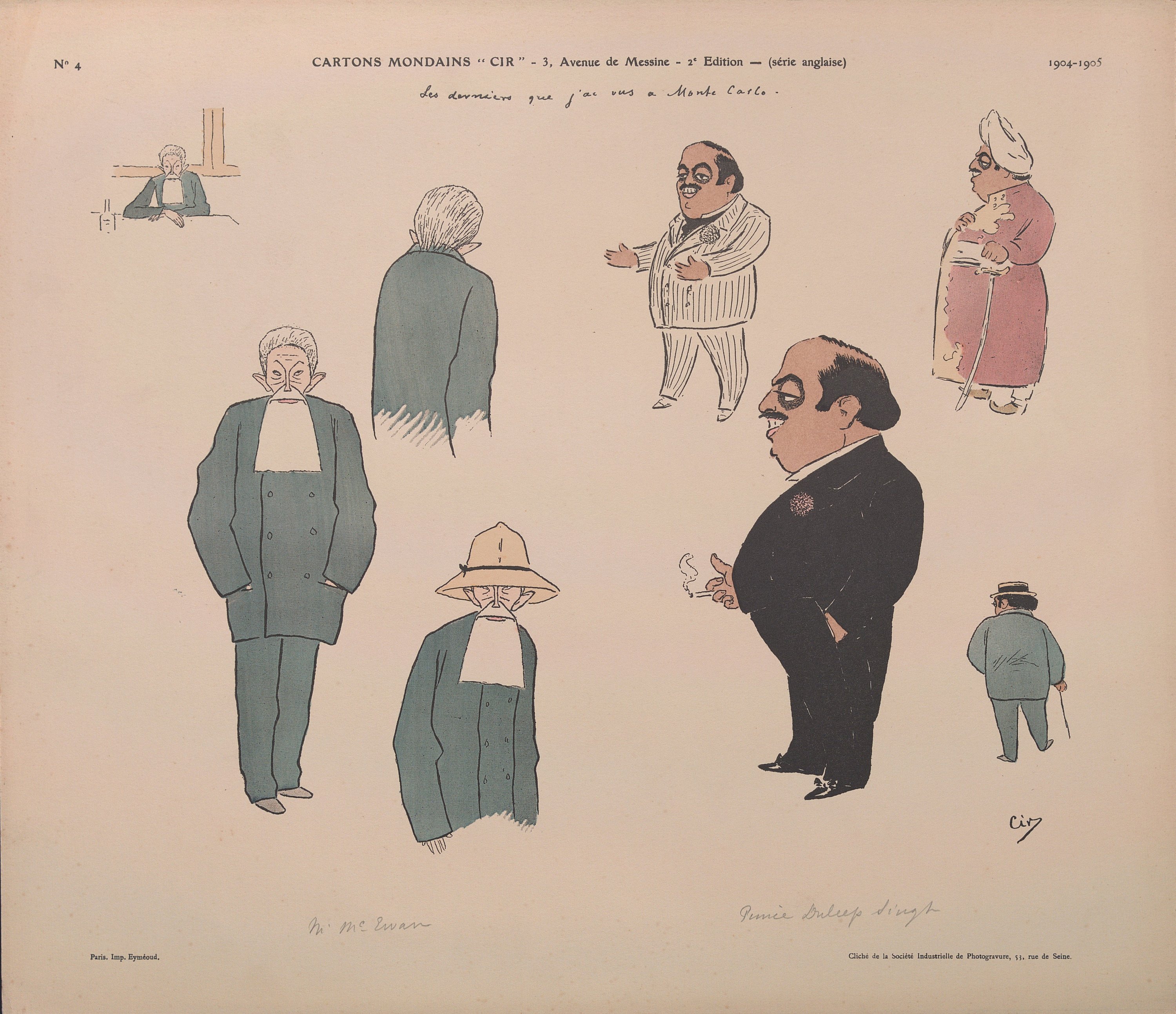 Elles représentent des personnages composant le gotha de l’époque: princes, aristocrates, hommes d’affaires, etc, dont le duc de Devonshire devant l’Hôtel de Paris à Monte-Carlo ; le grand-duc Michel de Russie au Golf-Club à Cannes ; le Maharaja Duleep Singh à Monte-Carlo ; le duc et la duchesse de Marlborough à Paris ; lord et lady de Grey au Carlton restaurant à Londres ; James Gordon Bennet junior homme de presse américain et fils du fondateur du New York Herald ; comte de Montesquiou ; etc. Peu courant (rousseurs éparses)