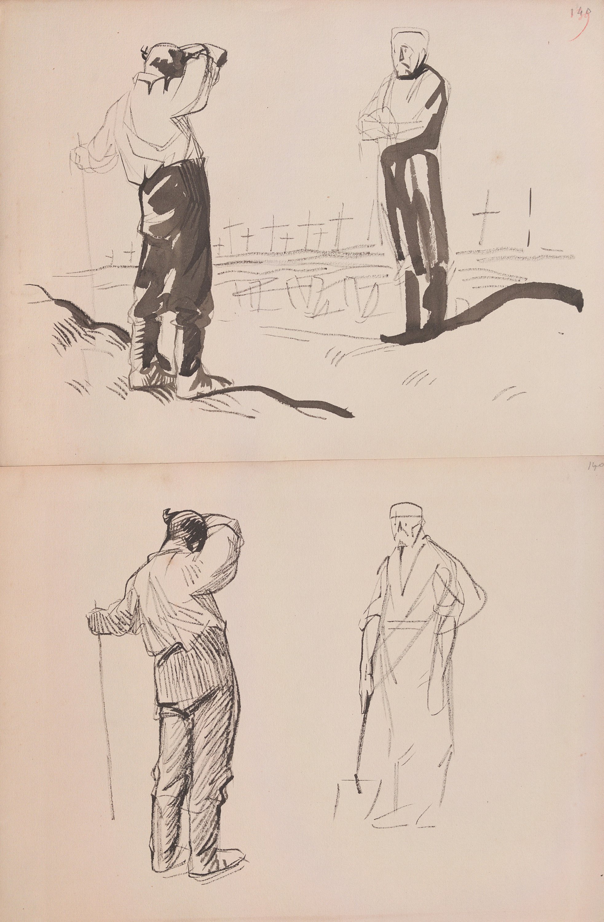 Il s’agit à la fois des ébauches, dessins préparatoires ou maquettes abouties en vue de leur publication dans la presse dont le journal « La Victoire - quotidien révisionniste: organe de la république autoritaire et plébiscitaire » sous la direction de Gustave Hervé paru à partir du 1er janvier 1916.