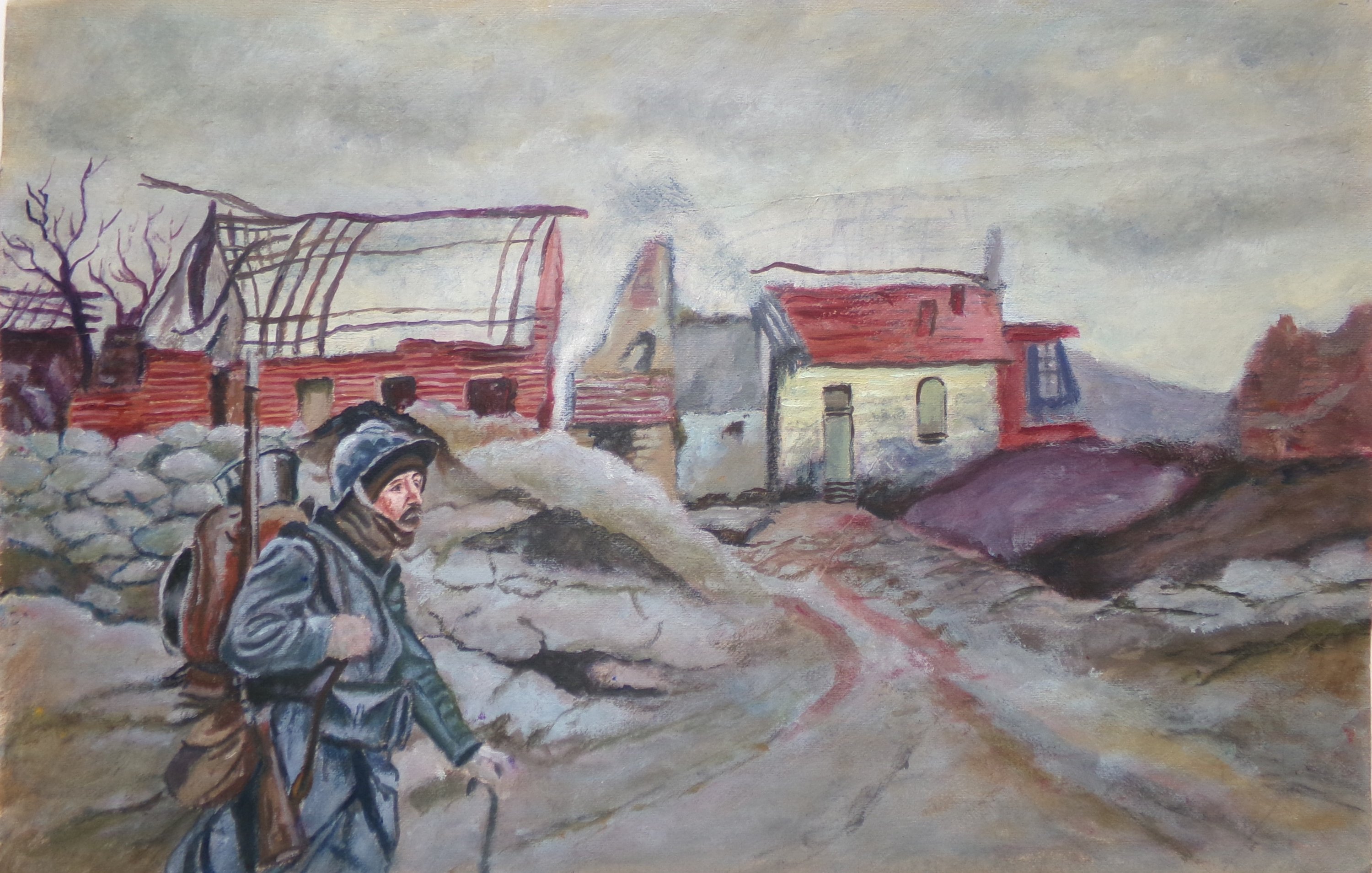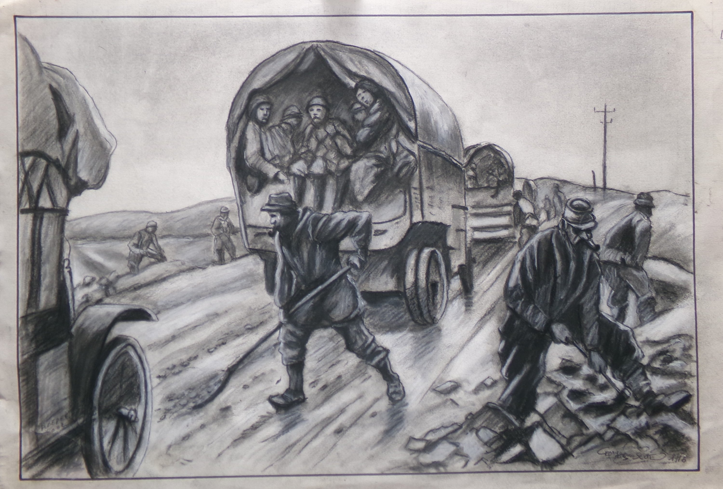 Lot de 10 dessins de poilus, formats divers, encre, fusain, aquarelle et gouache.