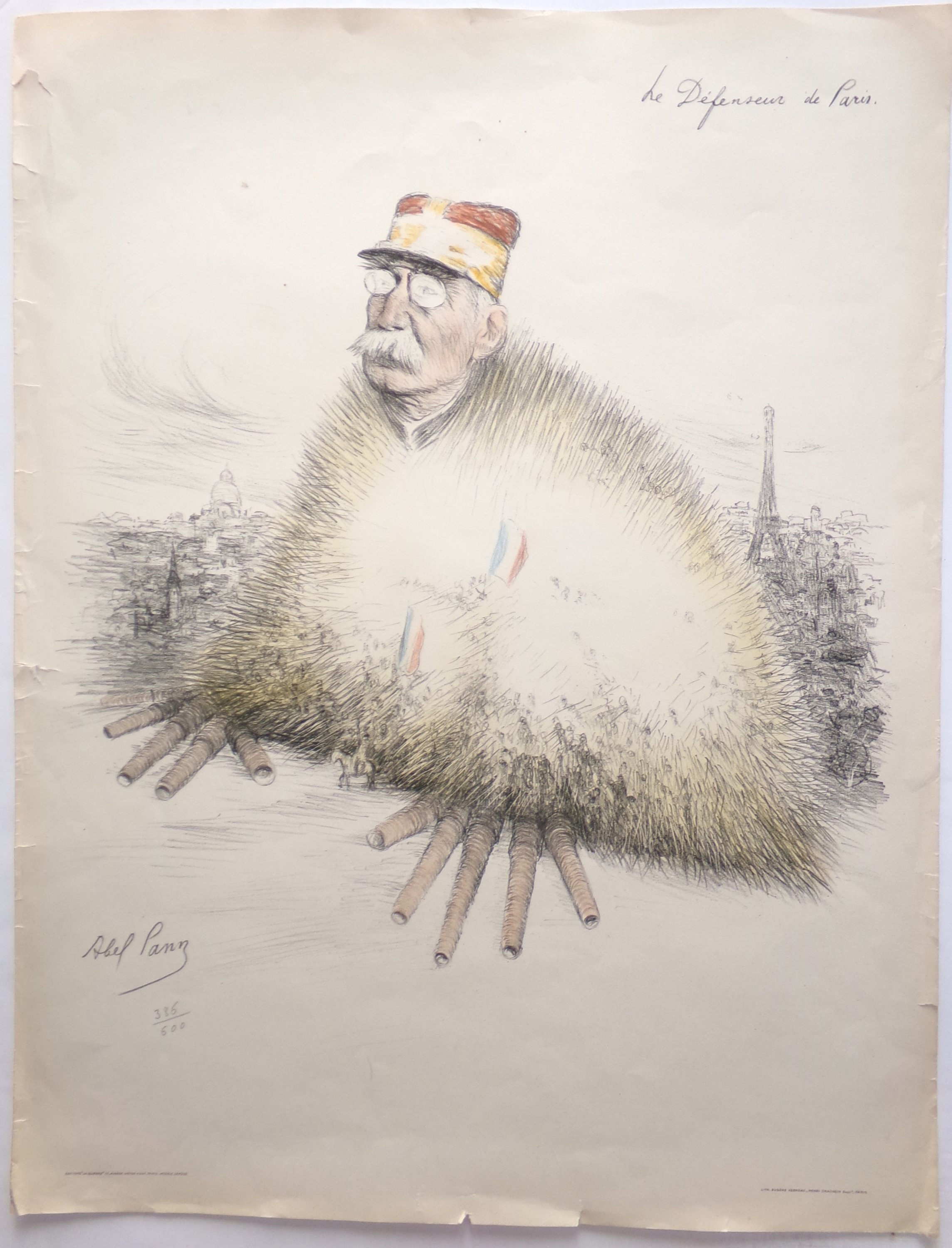 Joint: Abel Pann (1883-1963), Le défenseur de Paris, 1915, lithographie en couleurs, 65 x 50 cm (petites déchirures en marge).