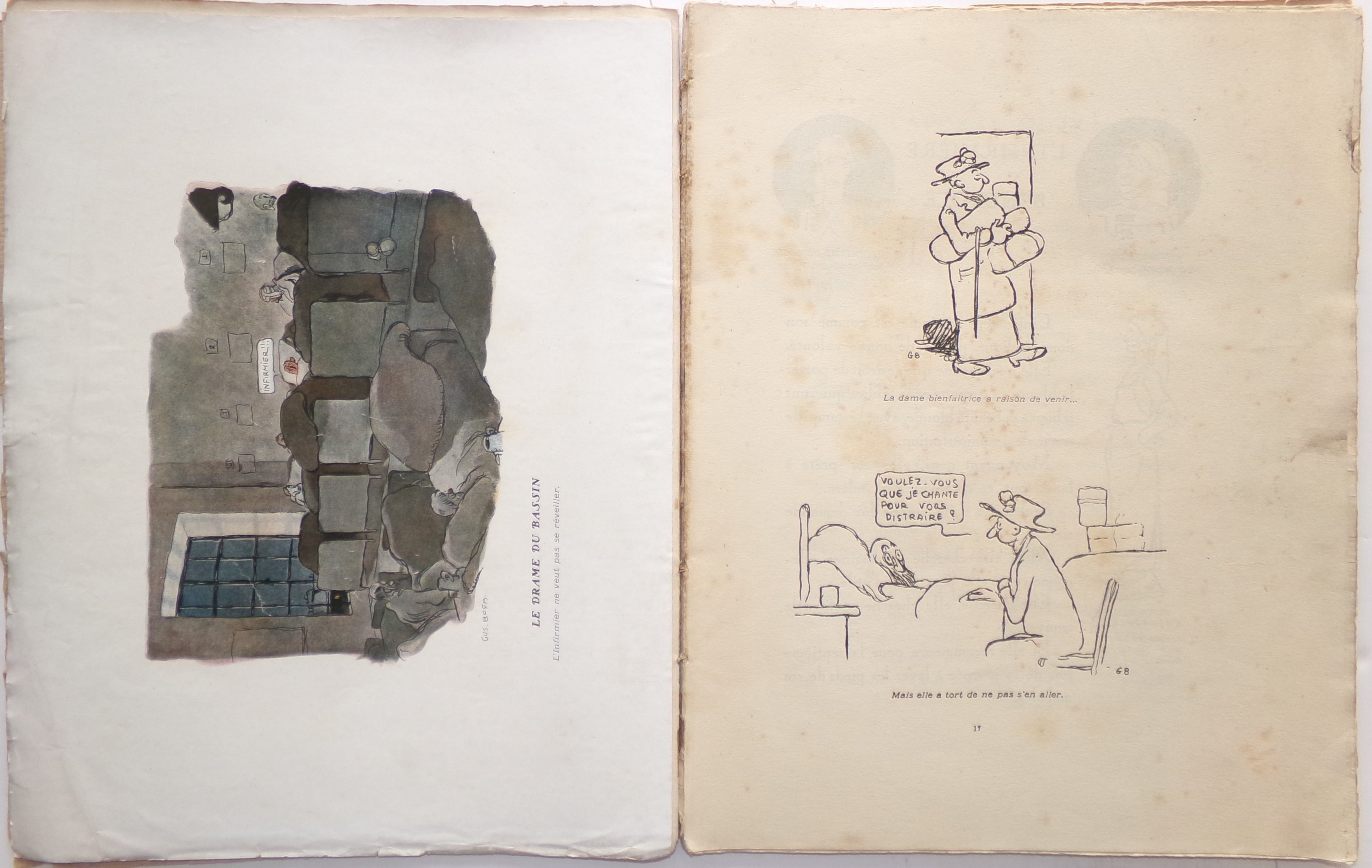 Gus Bofa, Chez les toubibs (croquis d’hôpital). Paris, La Renaissance du livre, [1917]. Grand in-4 broch., 62 pp. (en l’état) ;