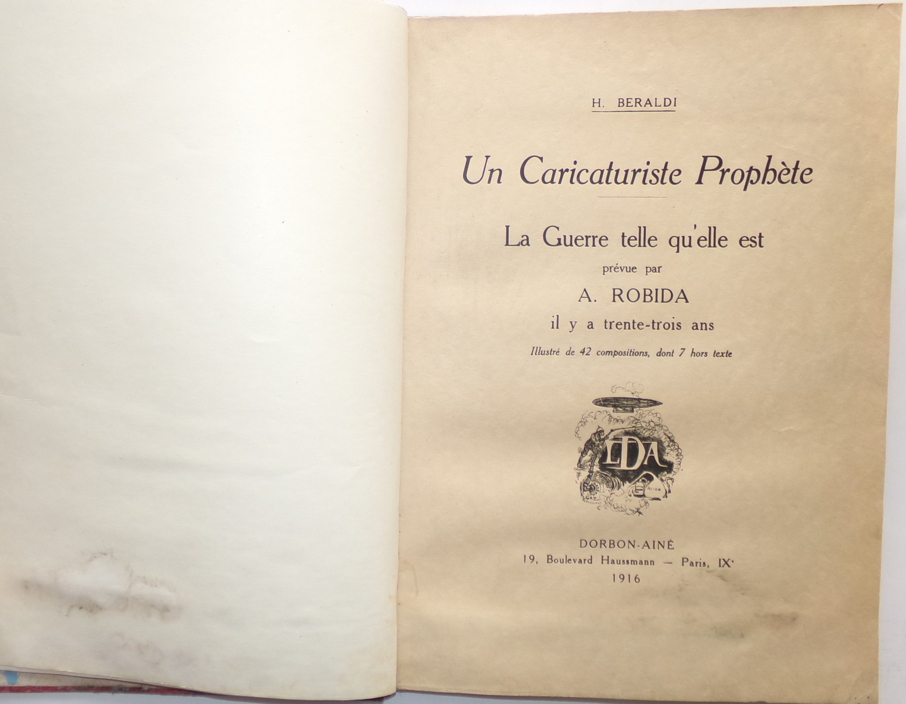 Henri Beraldi, Un caricaturiste prophète. La guerre telle qu'elle est prévue par A. Robida il y a trente-trois ans. Paris, Dorbon ainé, 1916. In-4 rel. ½ chagrin (mouillures) ;
