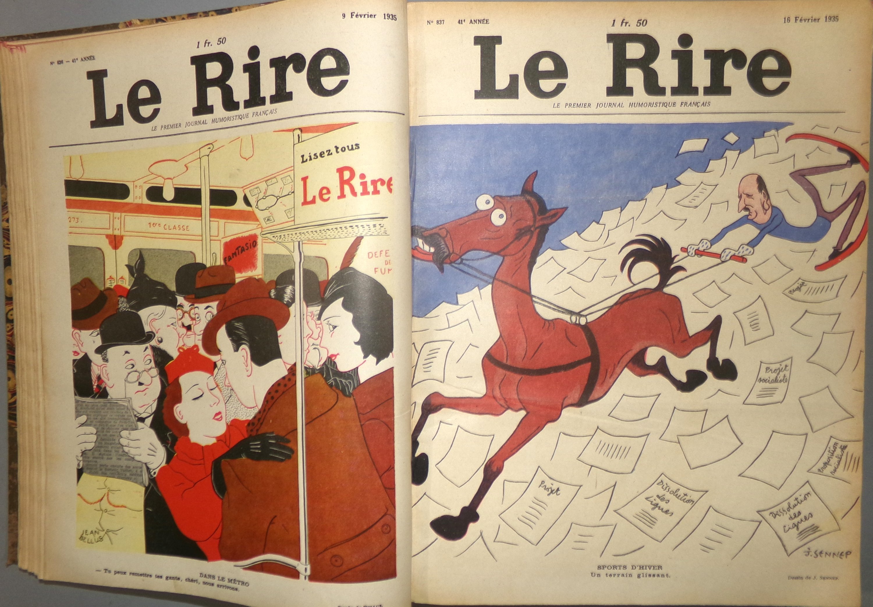 n°779 (6 janv. 1934) au n°830 (29 déc. 1934) (mque 820) dont n° spécial sur le Tour de France ; Livre de comptes de Stavisky par Sennep, non reliés ;