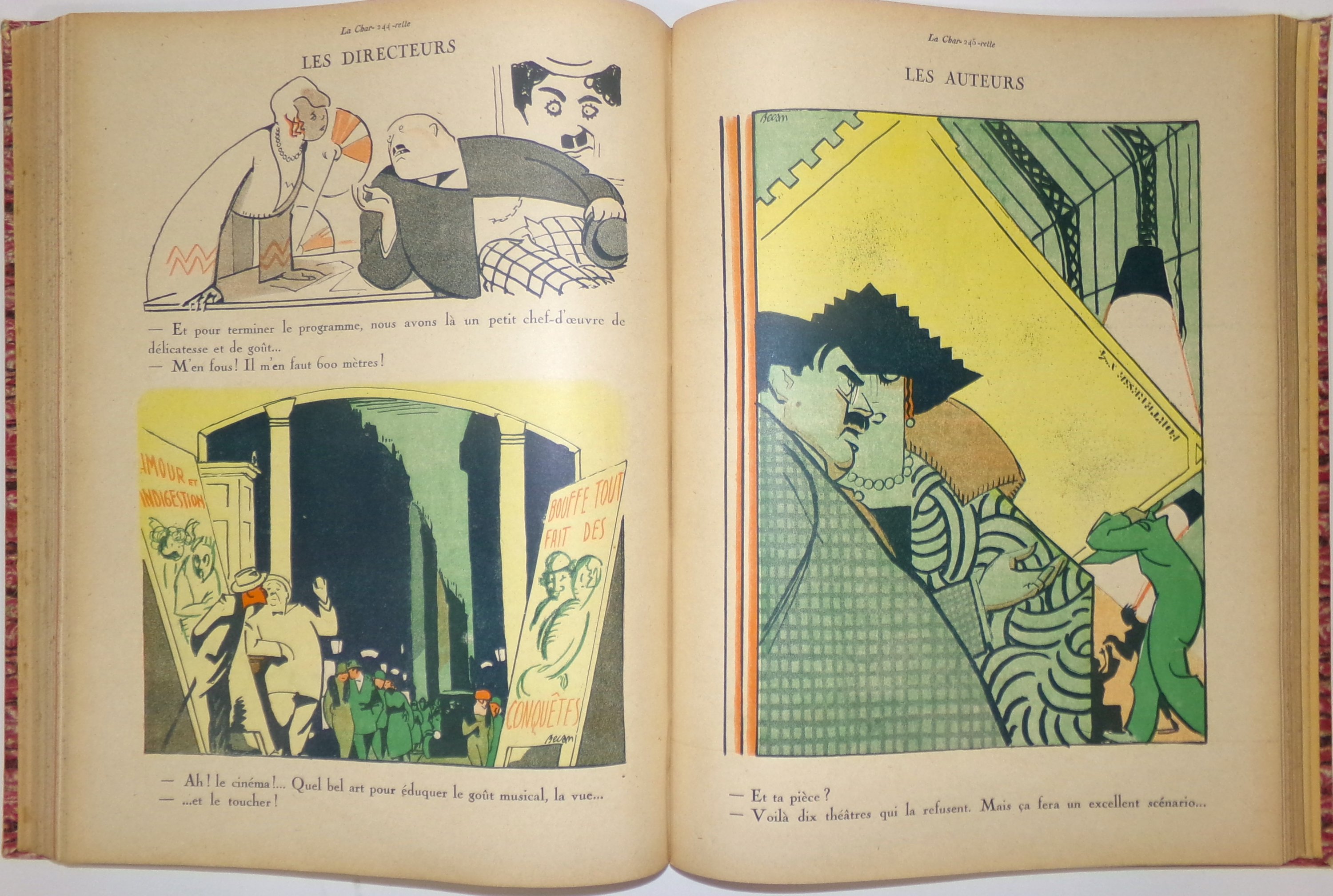 Textes de Henri Béraud, Colette, Curnonsky, Maurice Dekobra, Luis Delluc, Roland Dorgelès, Henri Duvernois, Franc-Nohain, Charles-Henri Hirsch, Henri Jeanson, Pierre Mac-Orlan, Paul Reboux, Séverine, Fernand Vandérem, Pierre Veber, Emile Vuillermoz, André Warnod, etc. Illustrations de Bécan, Gus Bofa, Boris, Abel Faivre, Pierre Falké, Joseph Hémard, Lucien Laforge, Jean Oberlé, Pavis, Roubille, Sem, etc.