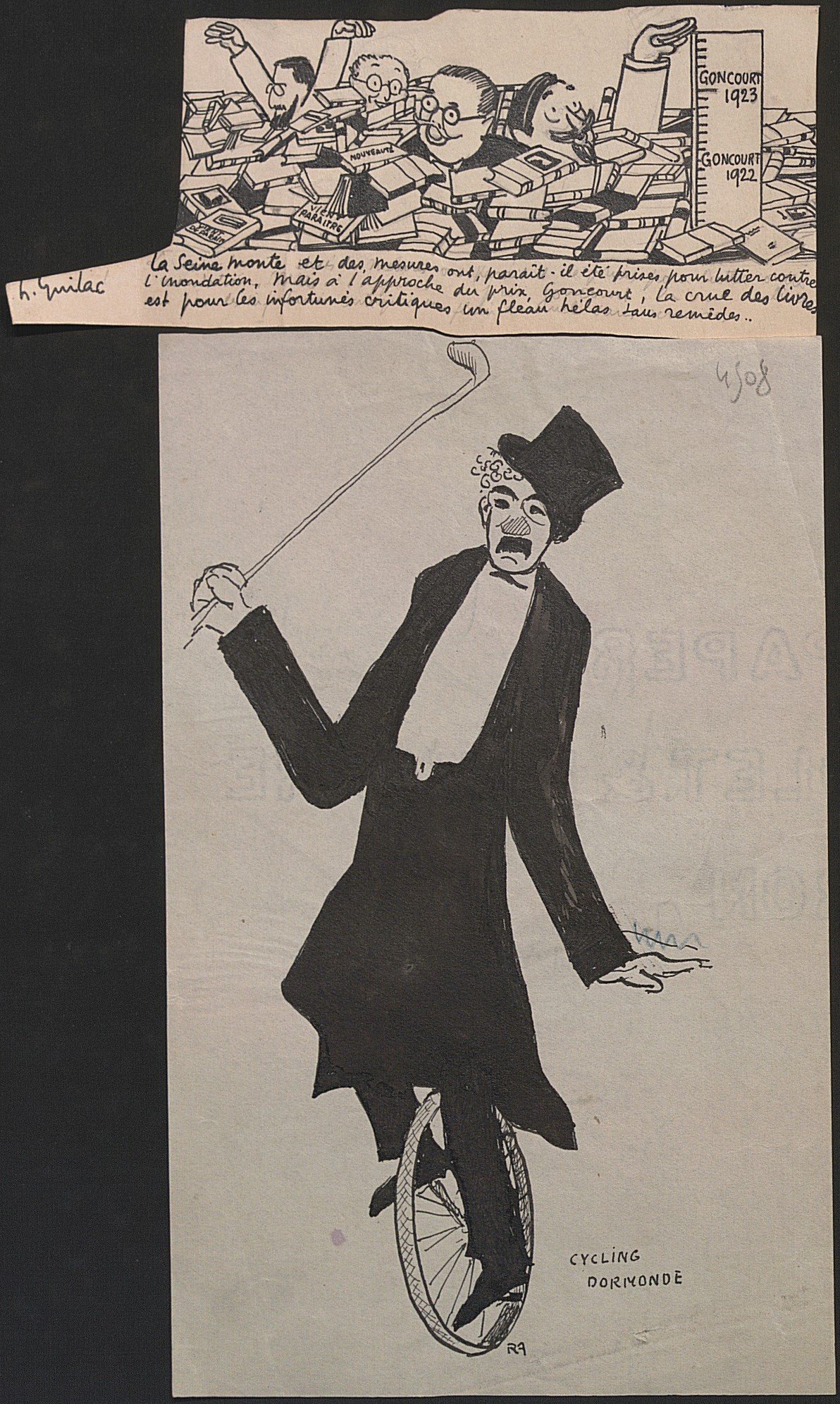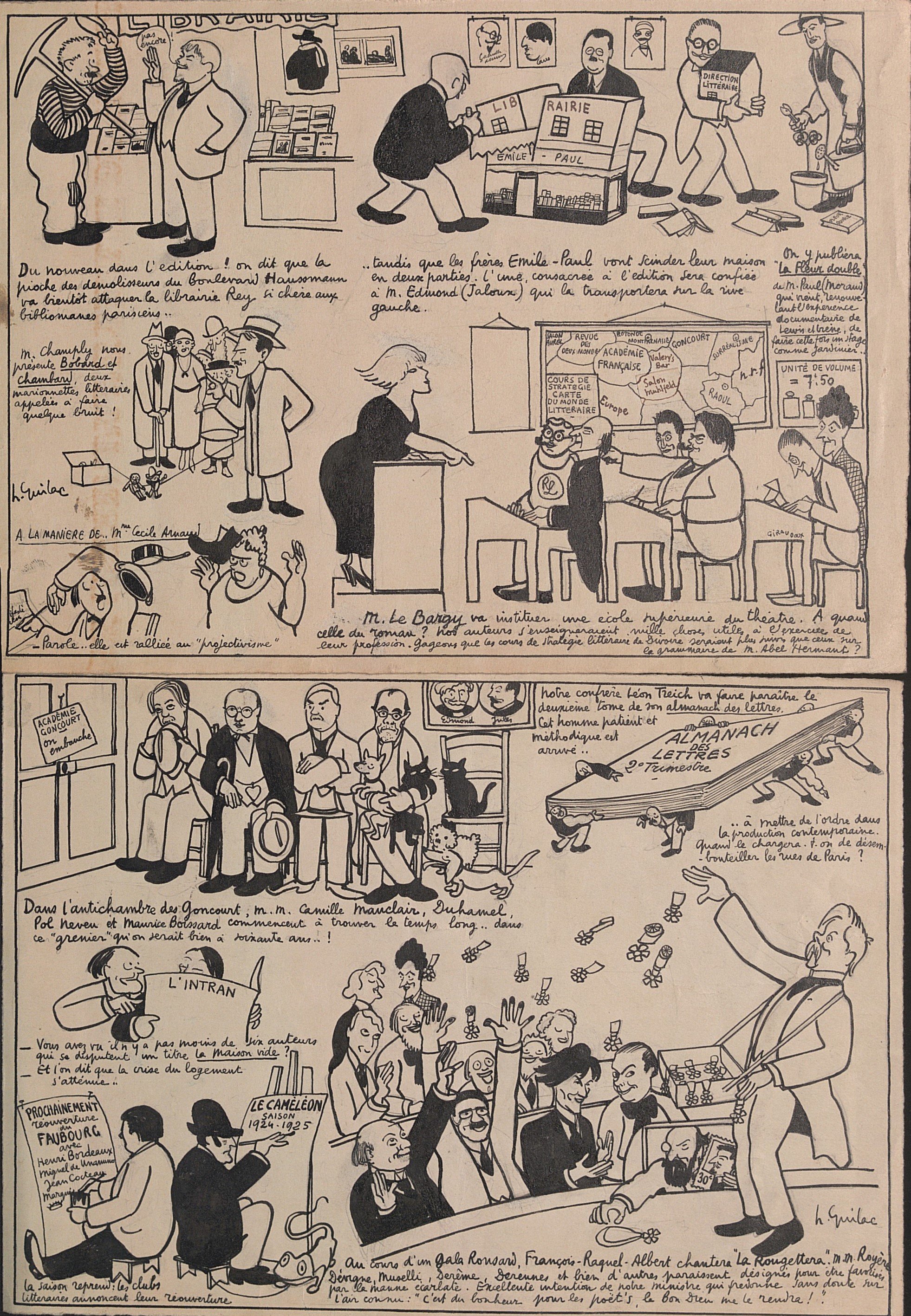 8 strips et 3 portraits, encre, signés, parus en 1924 et 1925 dans le journal Les Nouvelles littéraires artistiques et scientifiques, env. 24 x 33 cm et env. 17 x 12 cm ;