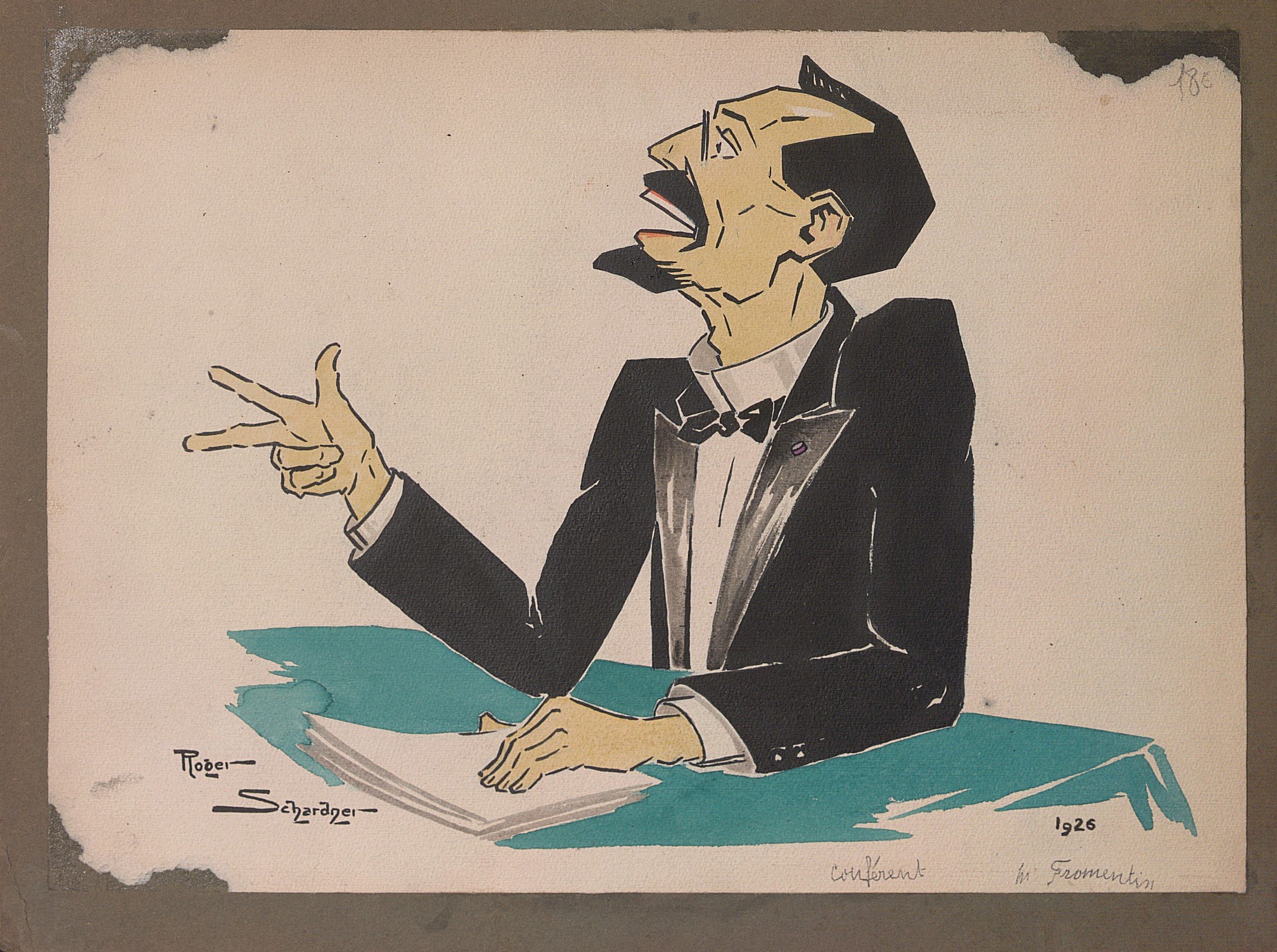 Roger Schardner (1898-1981), « Conférent, M. Fromentin », encre et aquarelle, signé et daté 1926, 24 x 32 cm ;