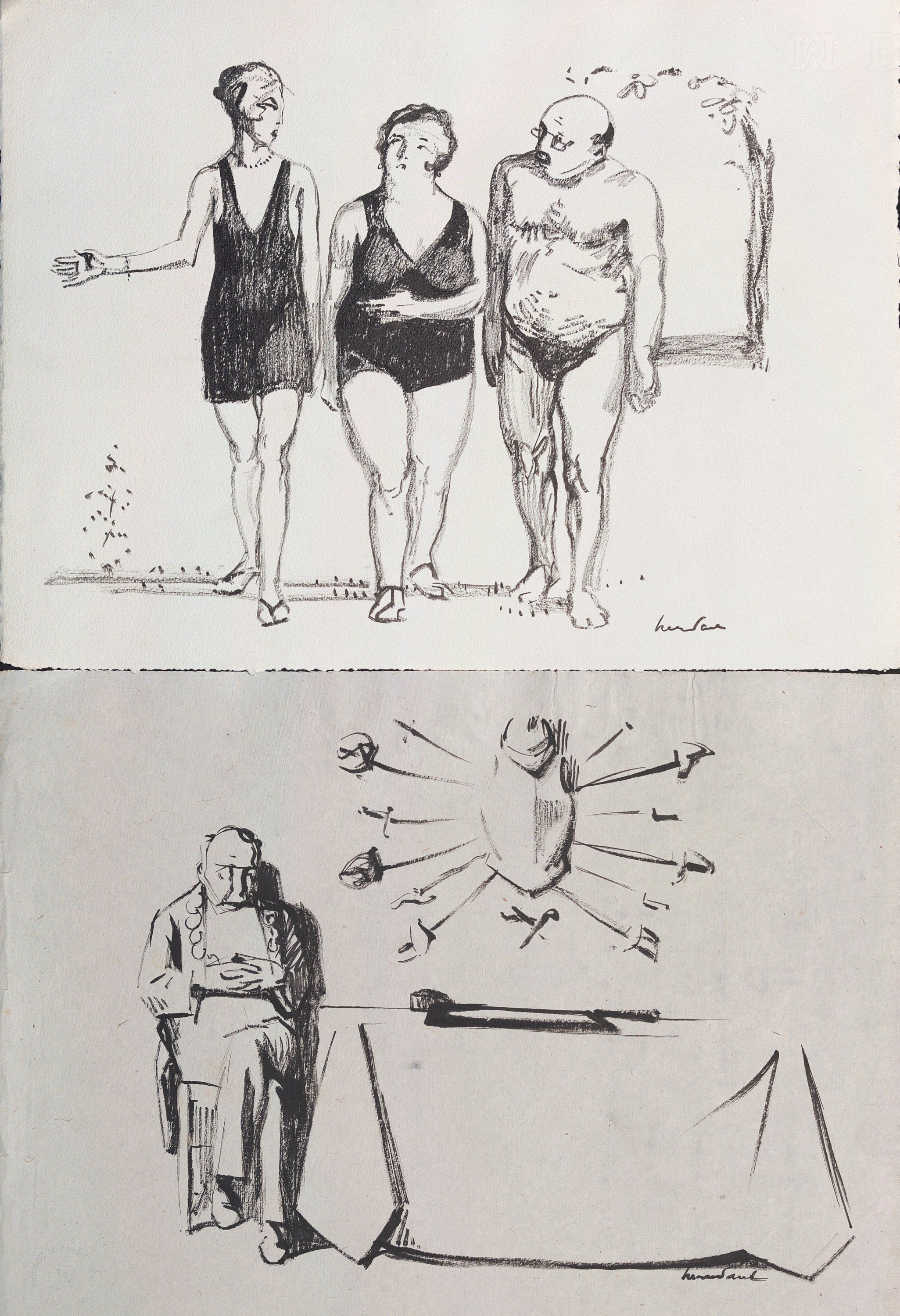 Maquettes préparatoires ou ébauches, en majorité dessins de presse en vue de publication comme dans l’Echo de Paris, certains légendés et titrés au crayon dont La France à Locarno ; La vie en rose ; Catholicisme de banquier ; En Syrie, à l’ombre des trois points ; scène érotique ; etc.