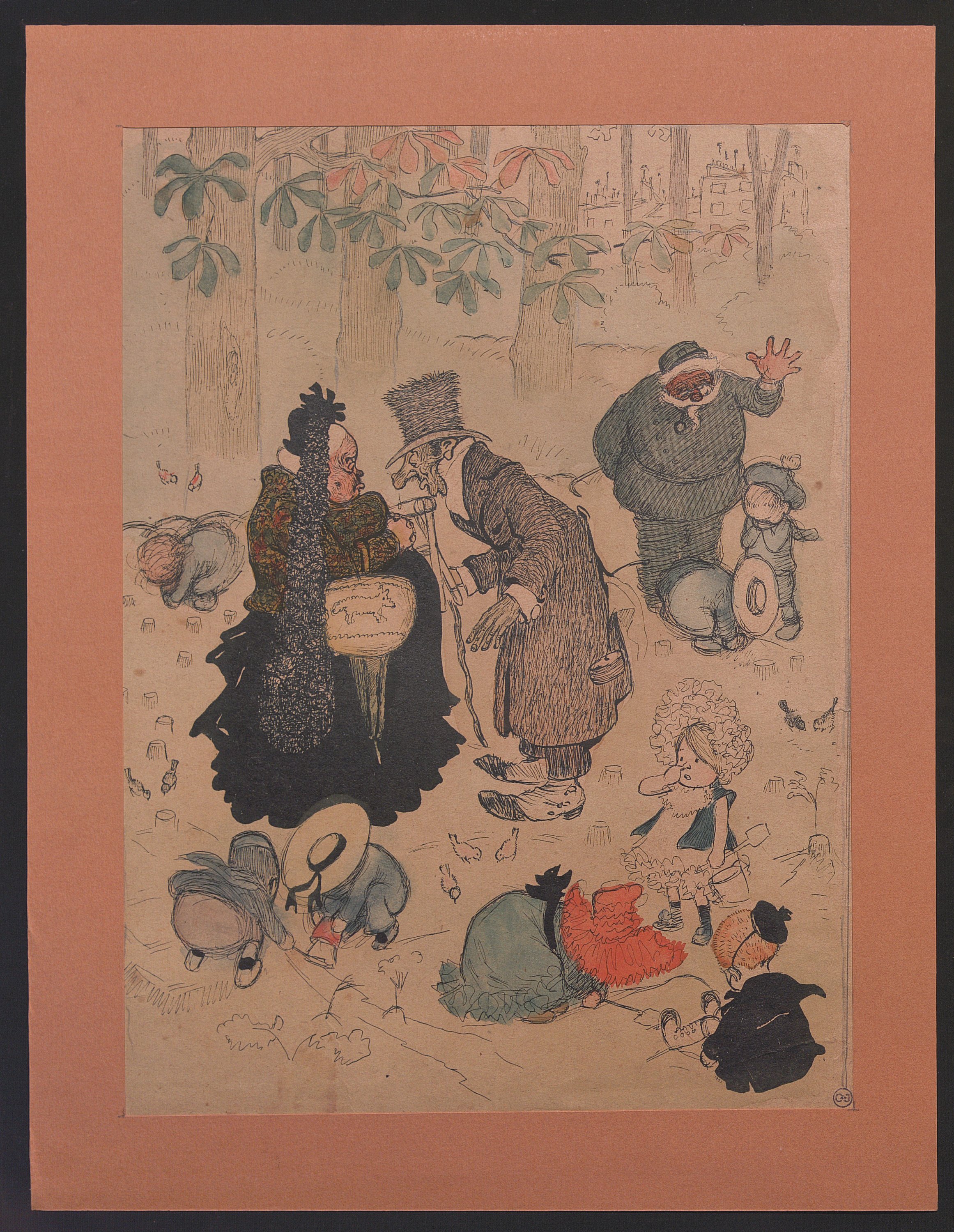 3 dessins signés et 1 estampe à identifier dont: Un cas rare chez un kabyle, encre et aquarelle, 21,5 x 27,5 cm ; Types de vignerons de Joigny, contrecollé sur carton, 25 x 31,5 cm.