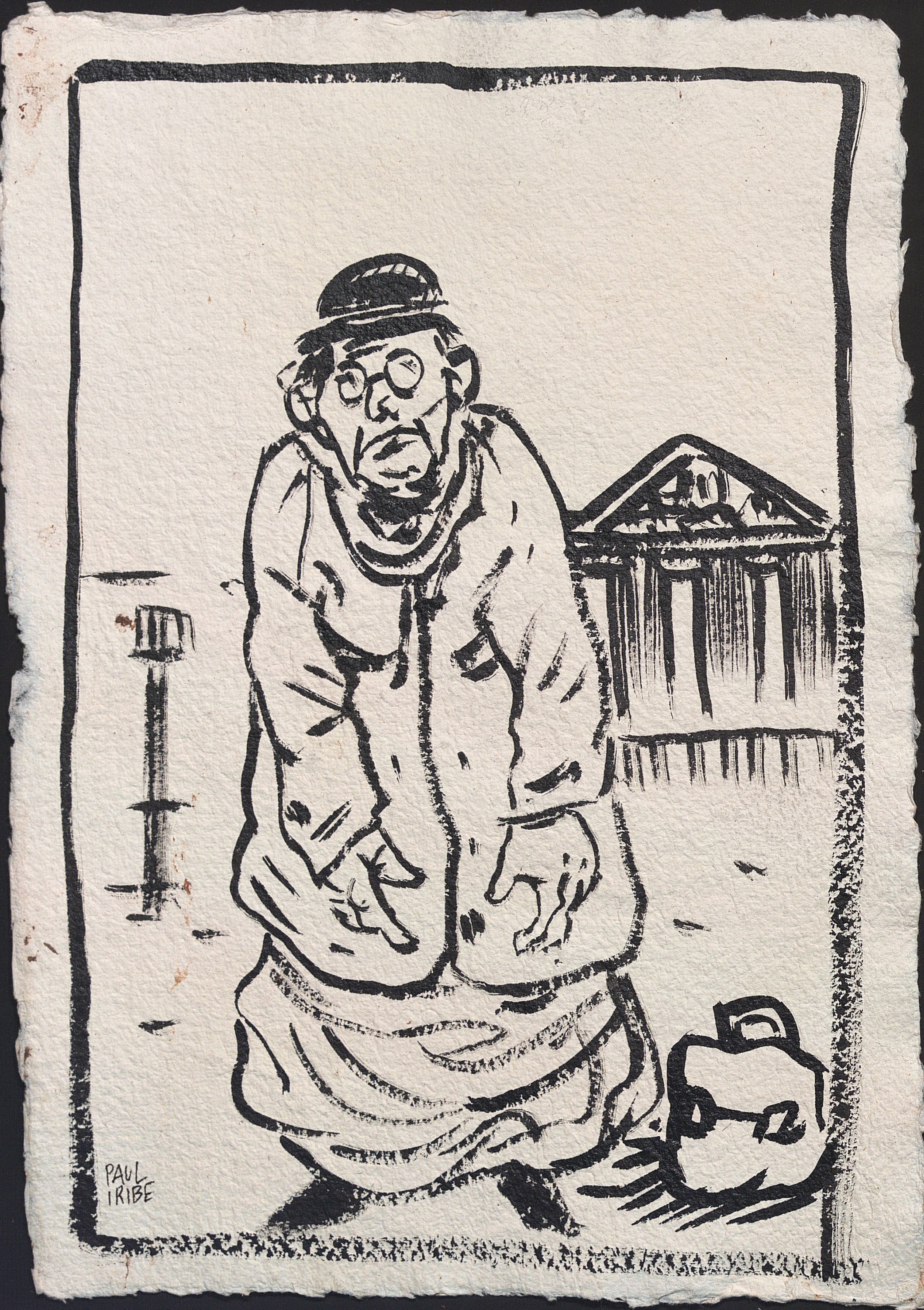 Personnage au cartable, signé en bas à gauche, 30 x 21,5 cm.