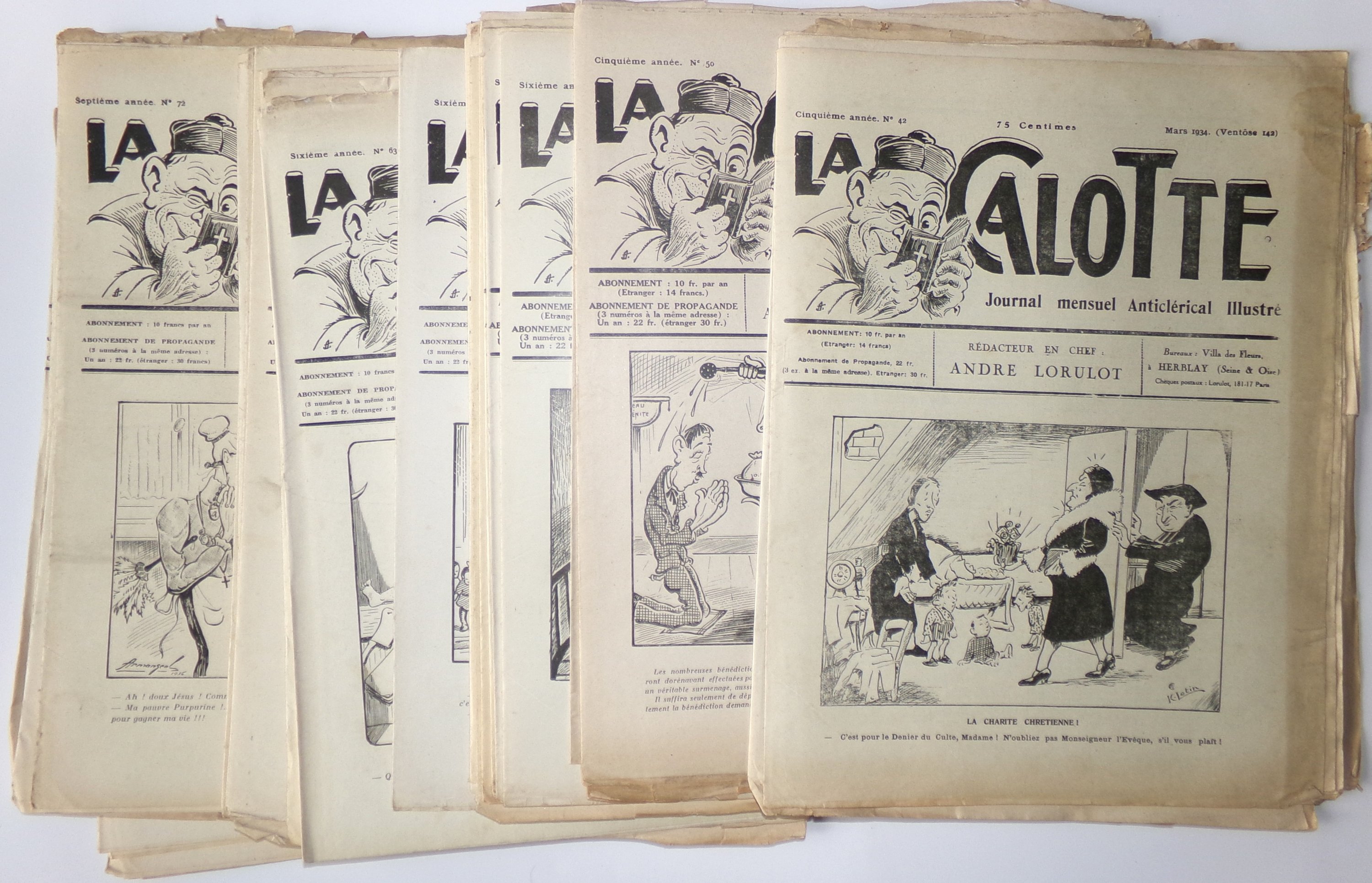 LA CALOTTE, JOURNAL MENSUEL ANTICLERICAL ET ANTIFASCISTE ILLUSTRE, 1934-1952