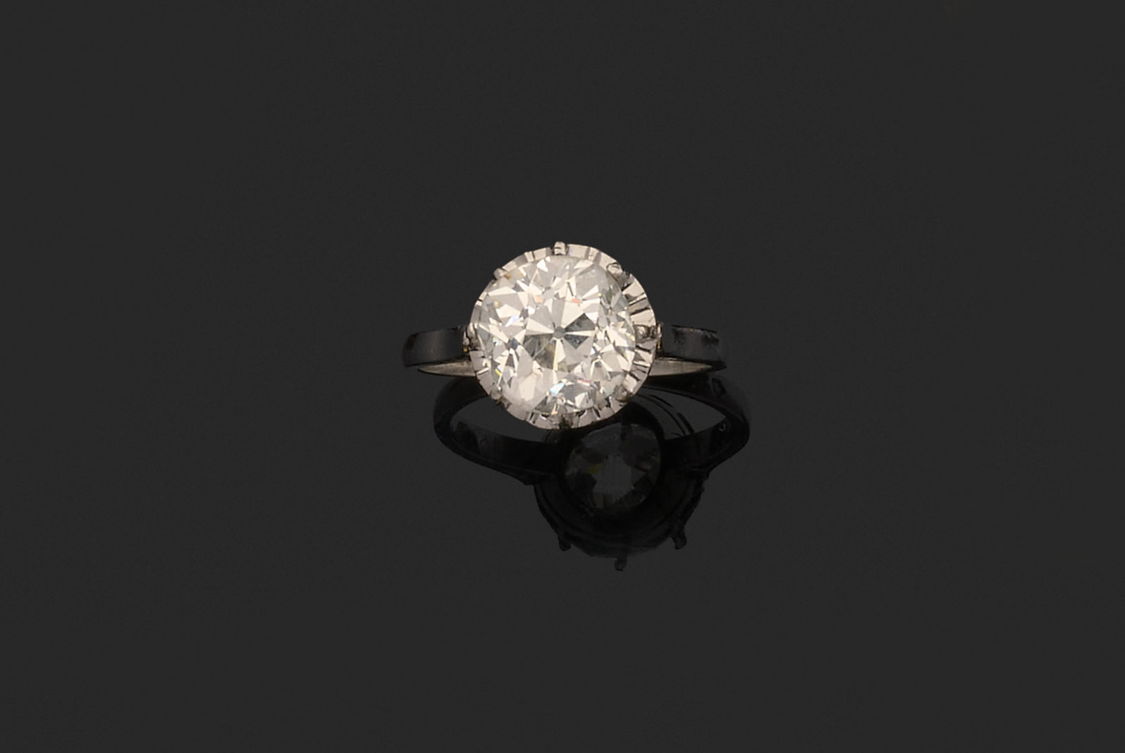 Platine 850 millièmes, ornée au centre d'un diamant rond de taille ancienne pesant 3,16 cts.