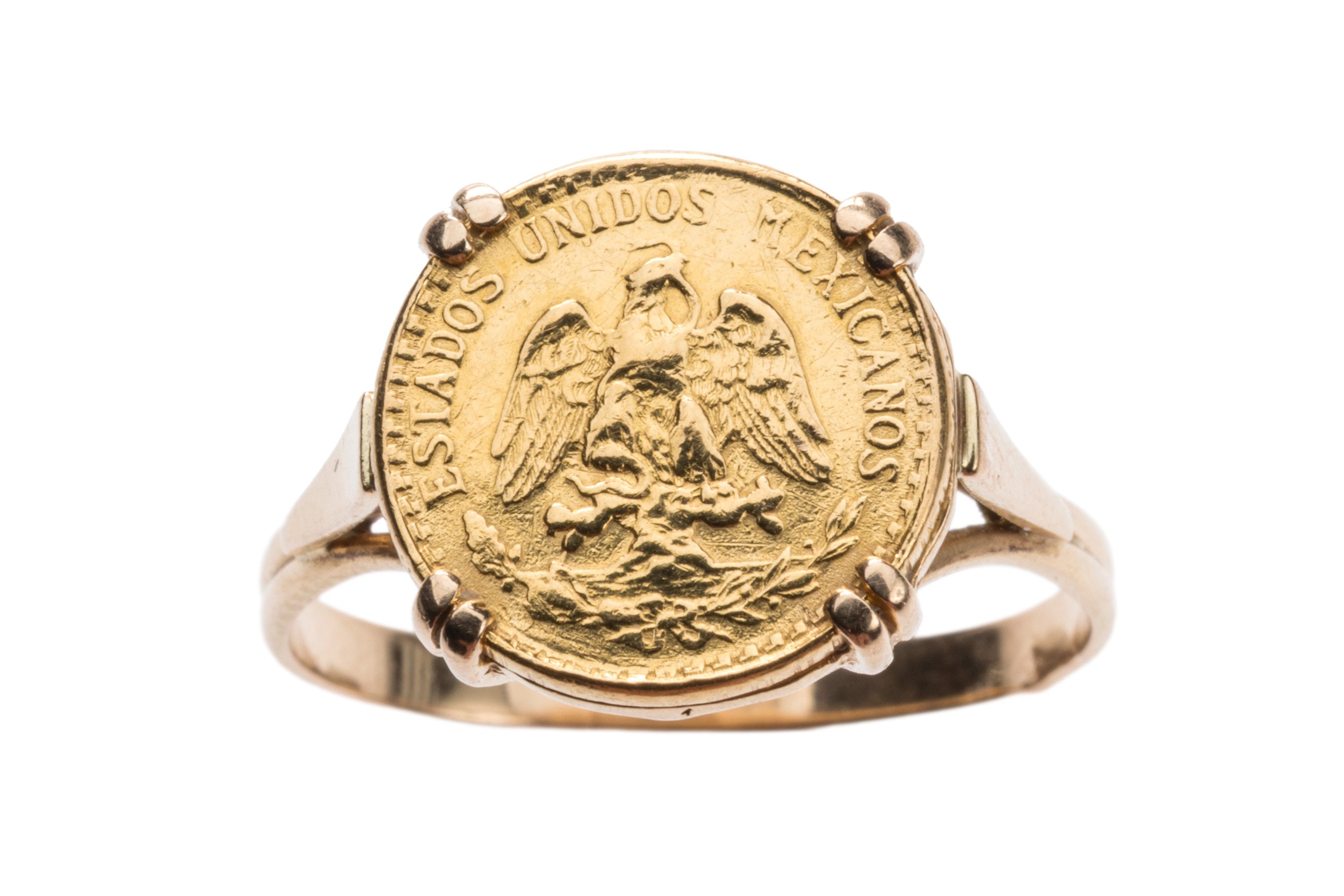 Joint: Mexique. 1 pièce de 2 pesos. Monté en bague or. Poids brut 3,9 gr.