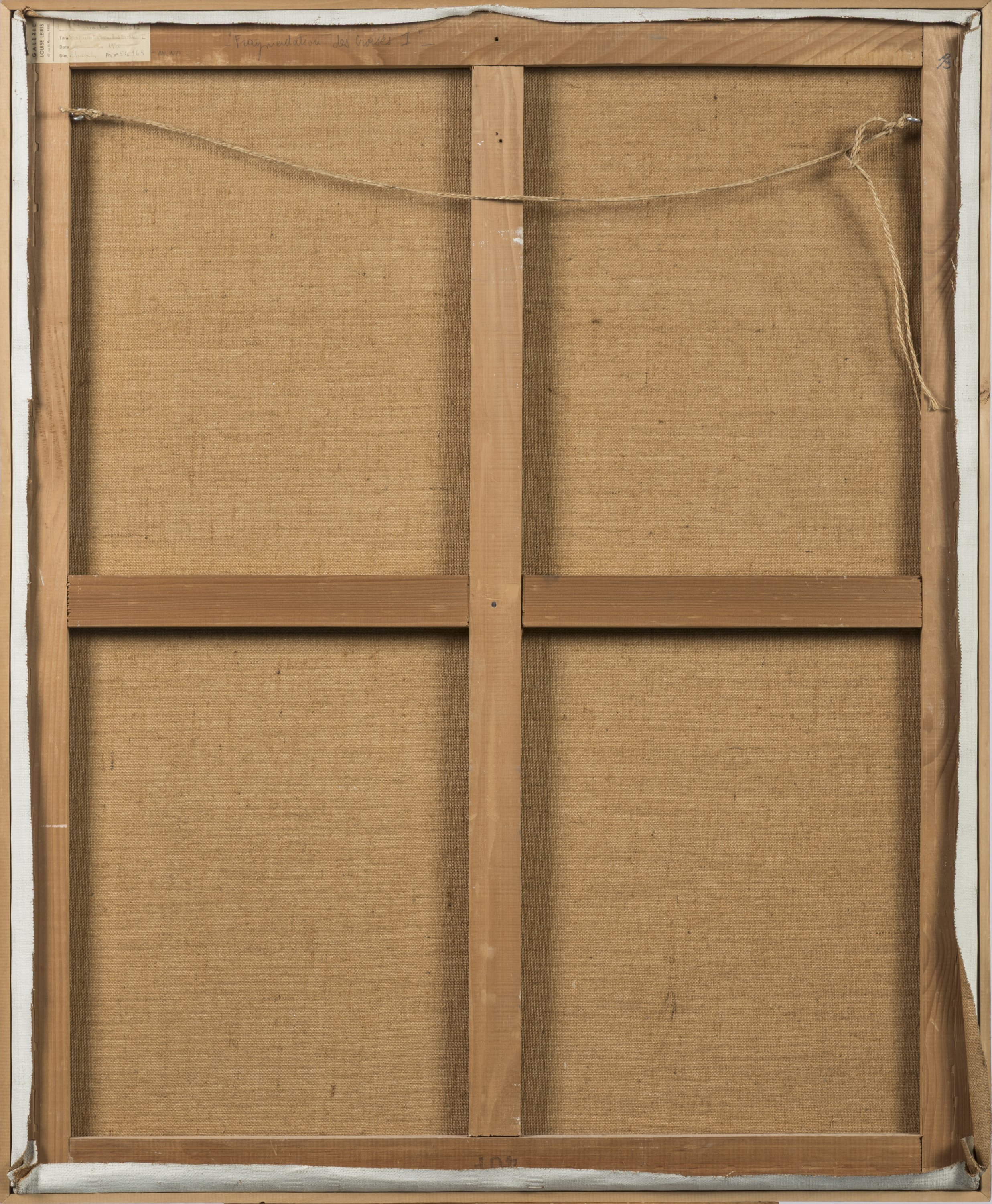 Etiquette sur le châssis de la galerie Leiris, Paris (n°014242, photo 54158).