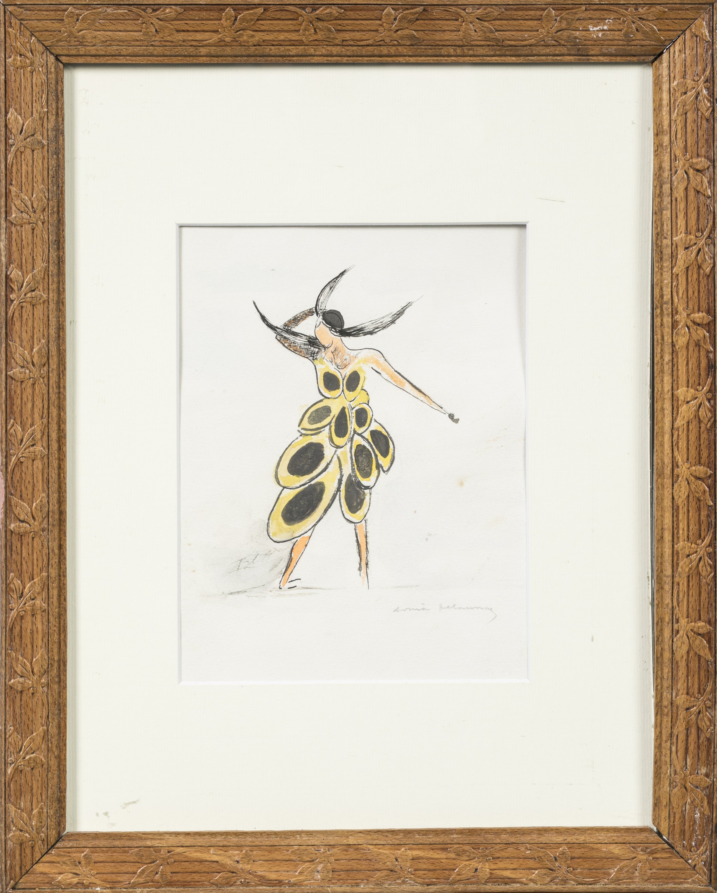 Sonia Delaunay. A ca. 1918 watercolor and ink drawing depicting a Petit Casino dancer. Signed.